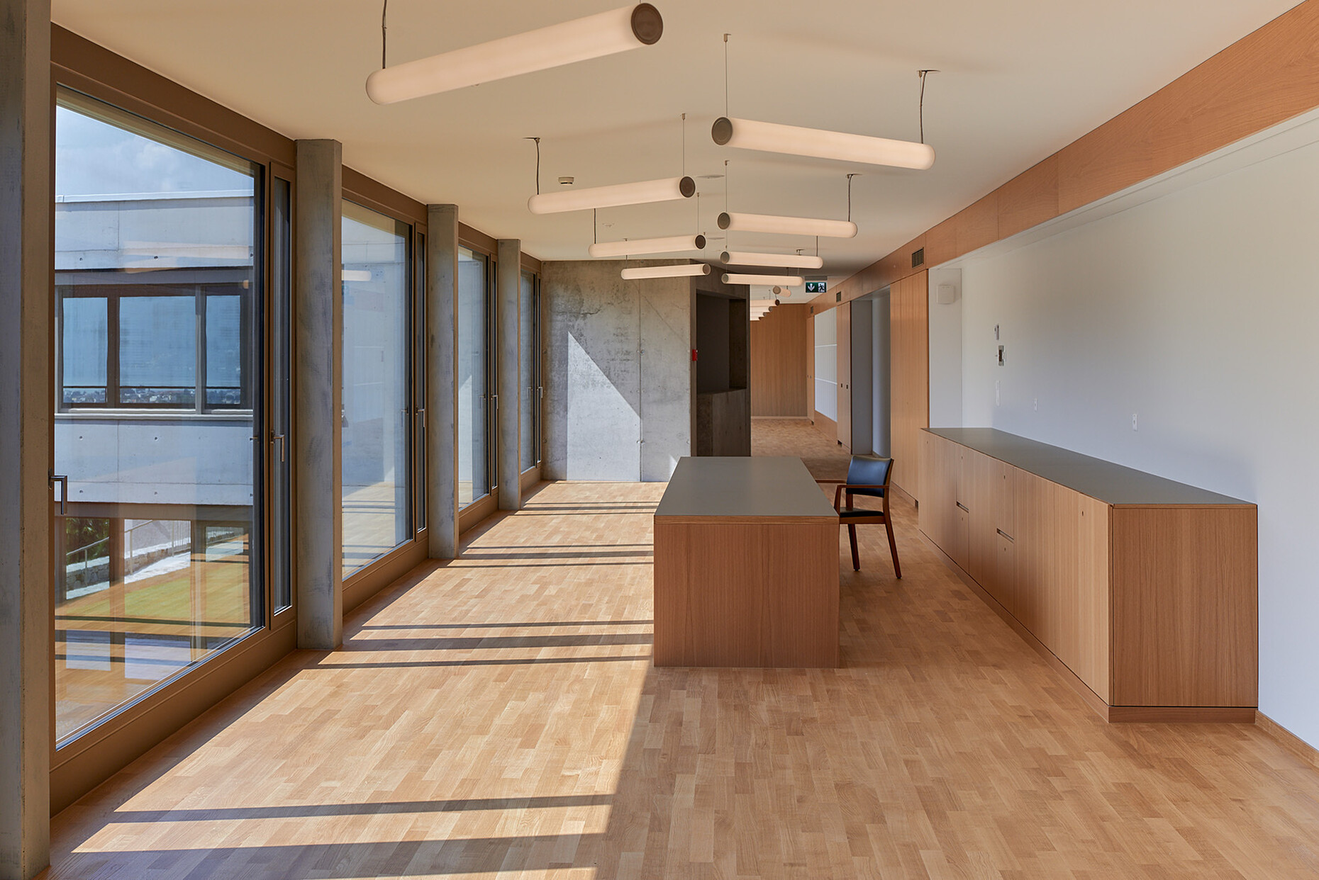 For the 20 rooms and the common rooms the architect’s choice fell to wooden flooring by Bauwerk Parkett, the long-standing Swiss parquet makers. The finish she opted for was “Monopark”, an oak strip parquet with a natural oiled surface and a quiet appearance. This surface has an understated feel to it and fits in well with the individual rooms, for instance the library, the refectory, the corridors and the sisters’ rooms. One particularly successful example is the chapel, which has been completely clad in wood, with its play of light and shade. It is accessed via the entrance hall. “In Casa Sant'Agnese the warm feel of the parquet engenders a sense of well-being that permeates not only people’s minds but even their souls,” is how the architect describes her design concept.