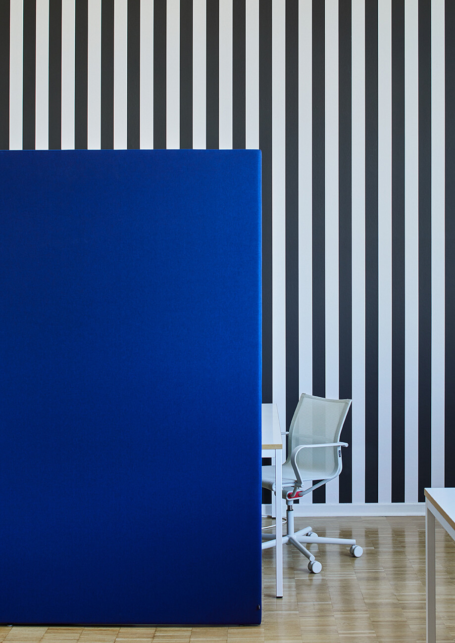 The result is a unique mix of tension and relaxation: graphic patterns and bright colours are combined with neutral tones and calm elements to create a harmonious overall picture. In addition, Besau Marguerre's interior design concept for the MK&G features a wide range of contemporary design, be it her own designs - such as the "North" pendant lights by e15 and the "SIGEL Mocon" modular board system by Sigel - or works by colleagues, such as the "Chart" acoustic partitions by Relvãokellermann for COR and the "D1" office chairs by Stefan Diez for Wagner Living. (am)