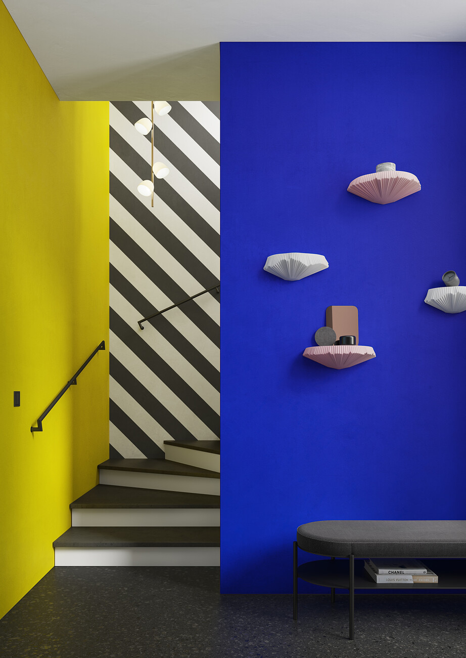 In all their installations Besau Marguerre attach great importance to a harmonious combination of colors and materials. “You can’t simply impose any old color on every space,” explains Eva Marguerre. The duo also relied on this credo when developing the retail concept for the Vitra showrooms in Asia-it is already being rolled out in individual stores. Vitra recently opened its first store (of seven) covering 200 square meters in Kuala Lumpur. Bright colors alternate with bare concrete walls, while green plants and curtains lend the free spaces a cozy feel. “The challenge was to transport the history and spirit of and the idea of the Vitra Campus to the Asian market,” says Eva Marguerre. And adds: “With each and every project our knowledge grows and the sheer variety of our projects keeps us thinking afresh.