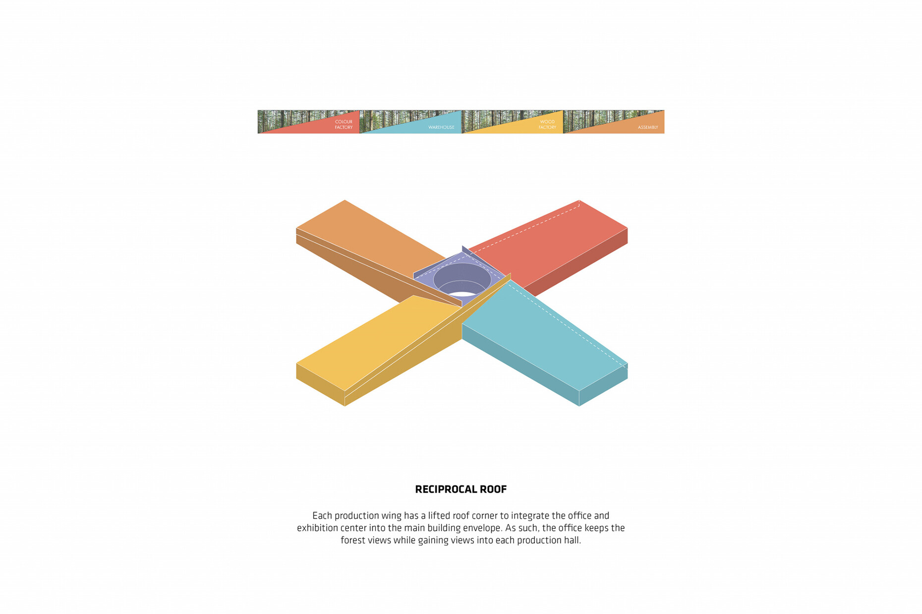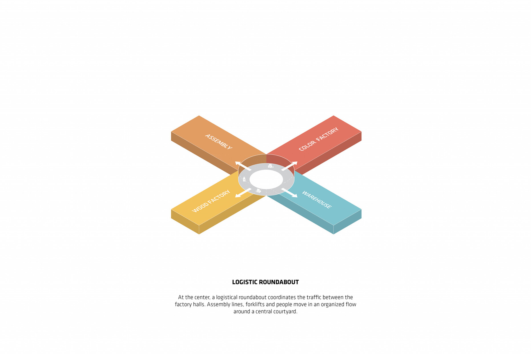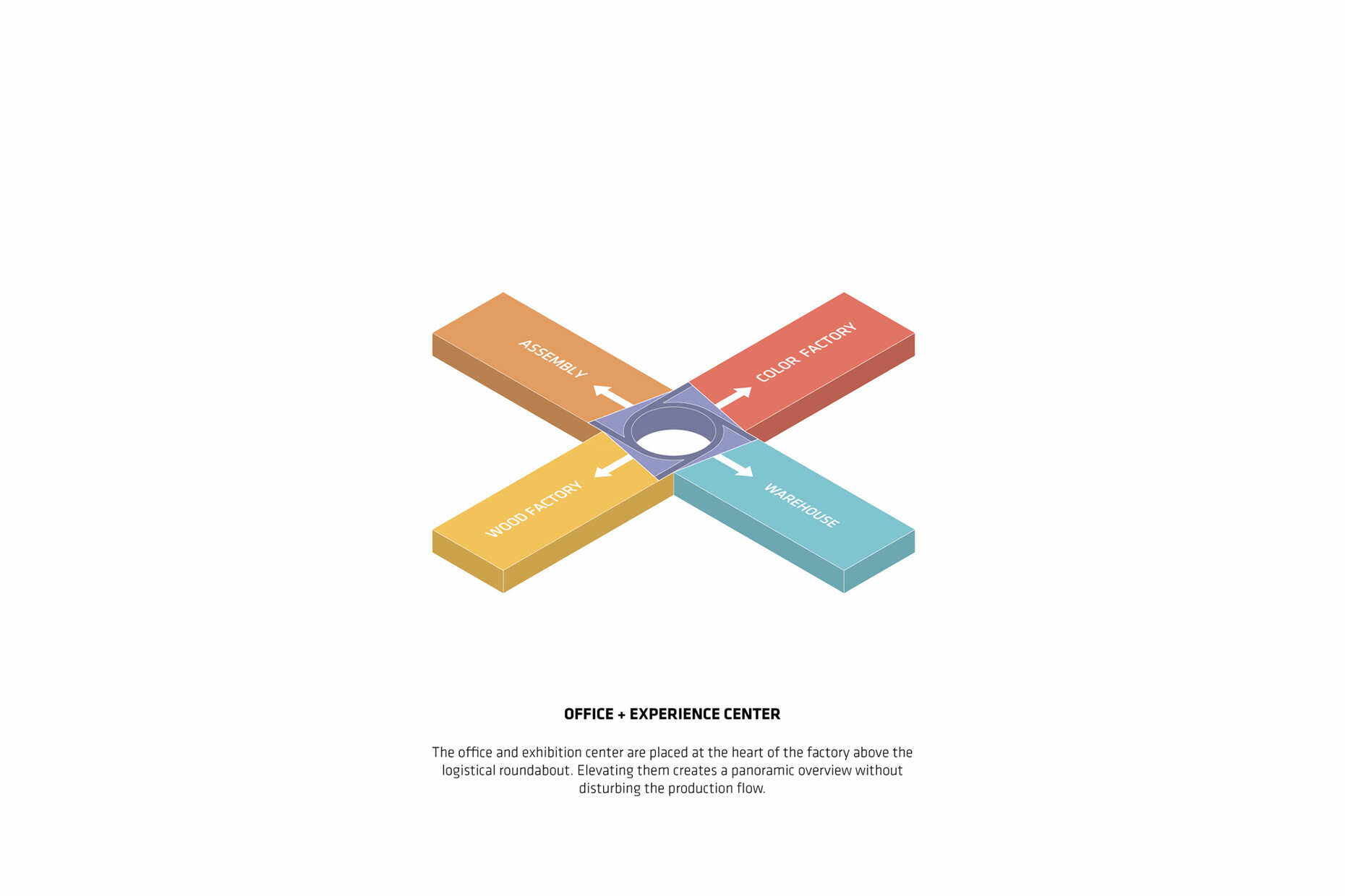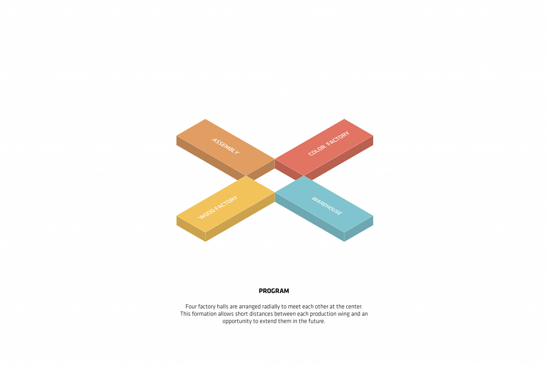 Kai-Uwe Bergmann: This kind of furniture production depends highly on the material used and the workflow because different materials need to be coordinated and then assembled. The building’s shape derives from this and also provides the name. Each wing has a specific function, such as warehousing or a section where materials are prepared for further processing. There’s thus optimal interaction between the four production units. Moreover, we’ve laid out color-coded routes in the factory that help reflect the production processes.