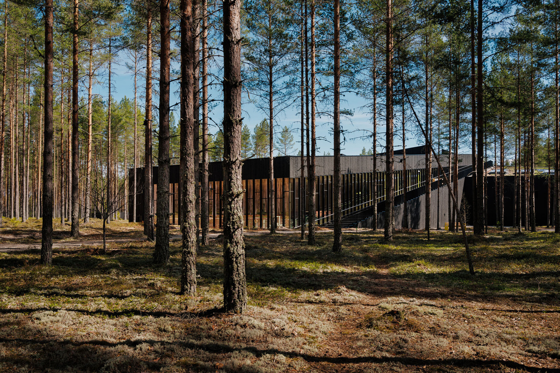 The building is in the middle of a forest. Wouldn’t it have been more sustainable to hook the building up to existing infrastructure?