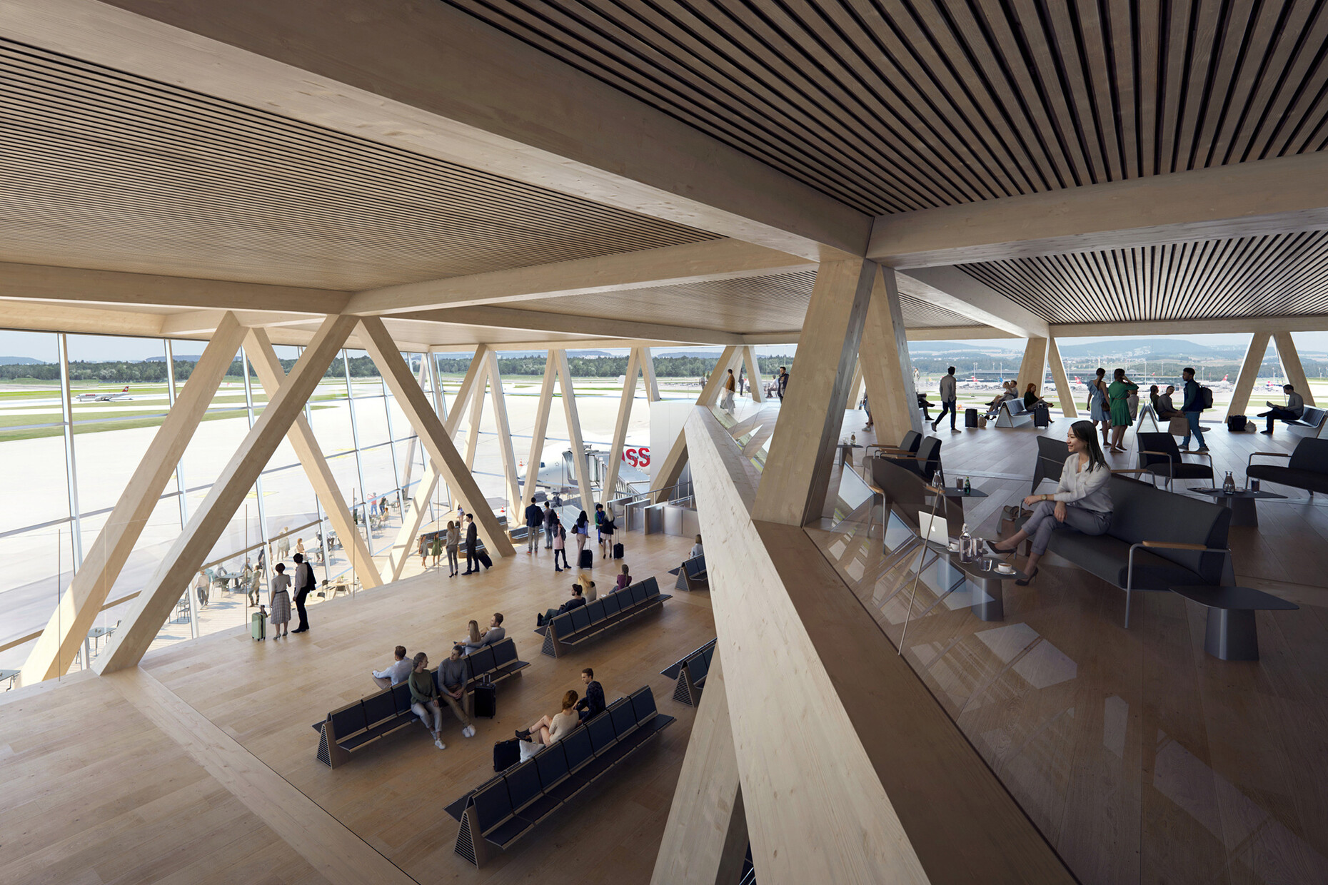 I would love to talk about your current projects, such as the proposal for the new Dock A at Zurich Airport. Why did you go for a wooden structure for it? That is fairly unusual for such a typology.