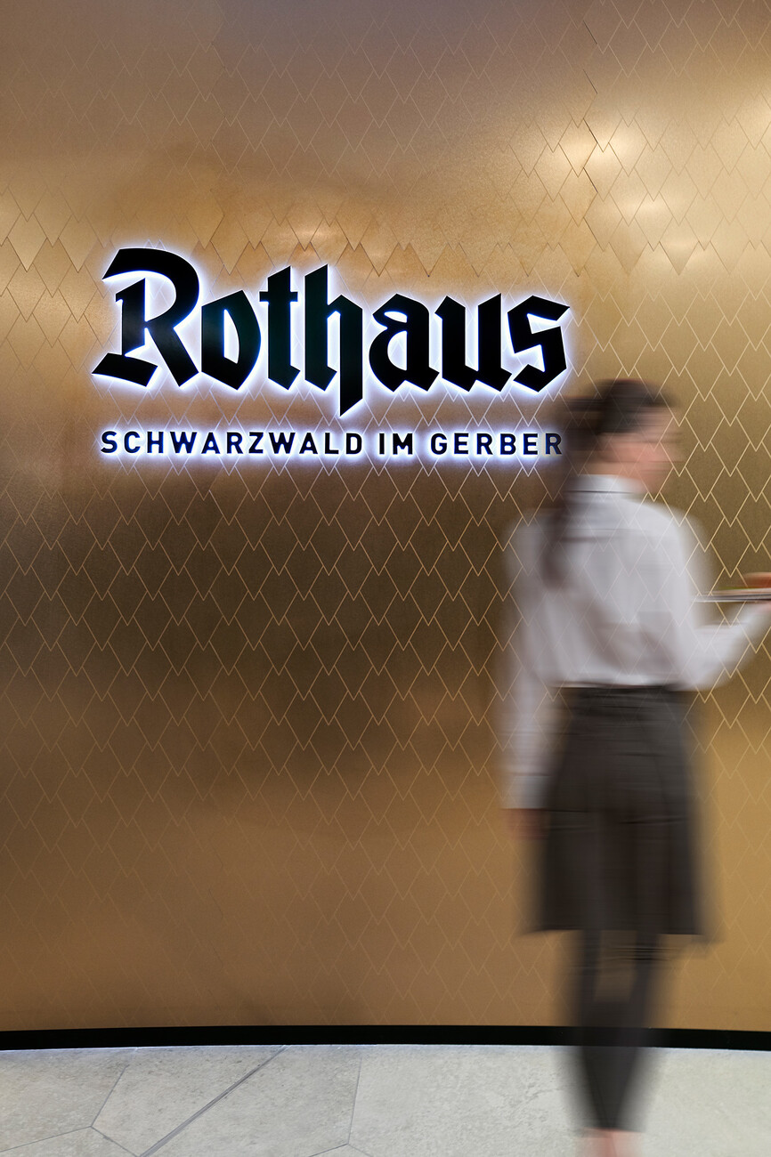 The famous “Tannenzäpfle” beer from Baden State Brewery Rothaus is most definitely one of the best-loved ambassadors of Black Forest hospitality. It enjoys cult status – and not just in the countryside near the Rhine and around Freiburg in Germany’s deep southwest, but in Berlin and other big German cities, too. Thus is it was that when the Rothaus brewery started planning its first branch outside of the company headquarters, the idea was for the new restaurant to embody precisely that special mix of the strong roots in the home region and a cosmopolitan spirit. For the project at Gerber, a major department in Stuttgart, a partner was selected who likewise embodies those two virtues: The upholstered furniture specialist Rolf Benz, another company steeped in tradition from the Black Forest. “Working with Rolf Benz seemed very natural for Rothaus: Both firms combine regionality, craft and quality. And both find ways in which tradition and innovation can complement each other,” says Eric Becker, the project manager of the “Rothaus im Gerber” restaurant enterprise and deputy sales manager at Rothaus.