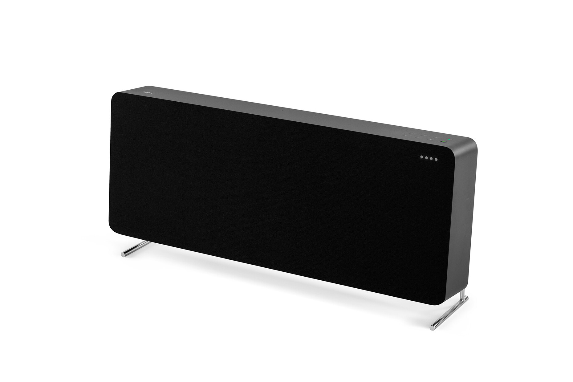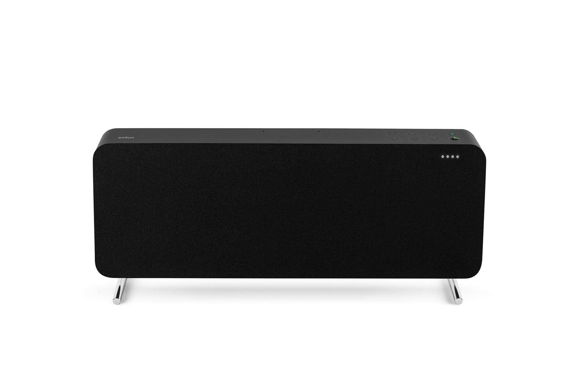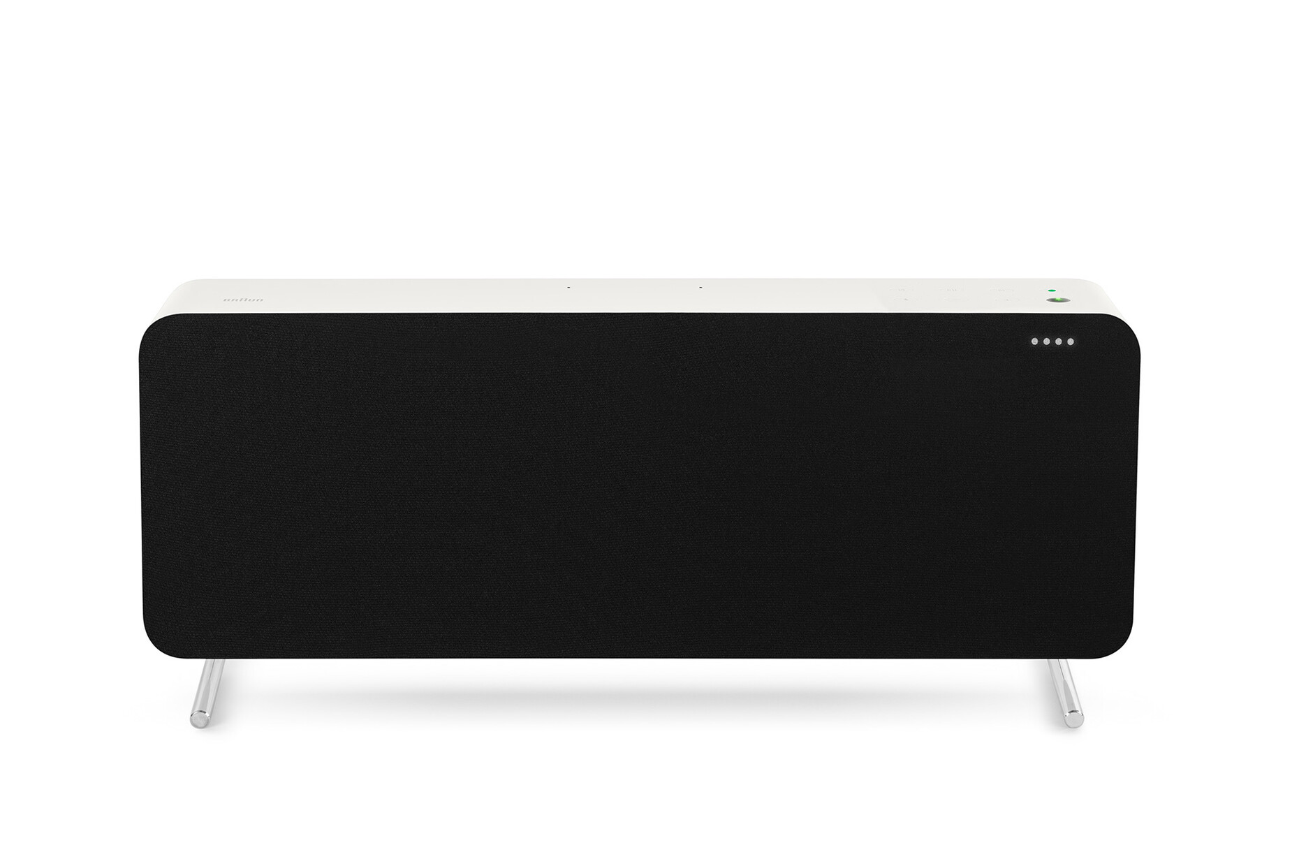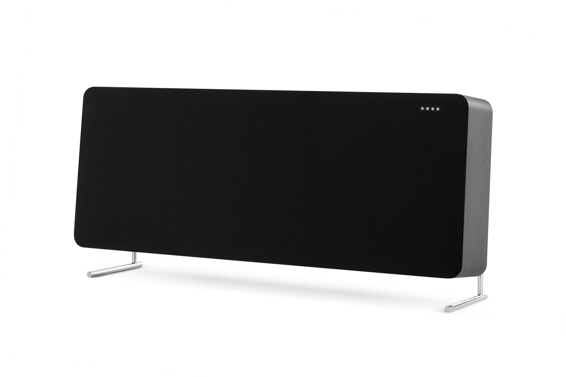 Incidentally, as Grabes describes the design process, it has always been the case at Braun that the designers have taken their lead from function and technical specifications and have then simply clad them in good industrial design. Accordingly, as he goes on to explain, something known as BMR (balanced mode radiators) technology makes it possible to construct very flat housing without any loss of sound quality. And in all three models, this housing consists of an anodized aluminum frame, while the fronts of the appliances have a textile covering. The designers devised this covering with a kind of miter of the kind used in furniture construction, meaning that almost no seam is visible between the frame and the cover. Such details underscore Braun’s aspiration for the future – to play in the same league as Bang & Olufsen. In terms of price the new loudspeakers are also aimed at the latter market segment.