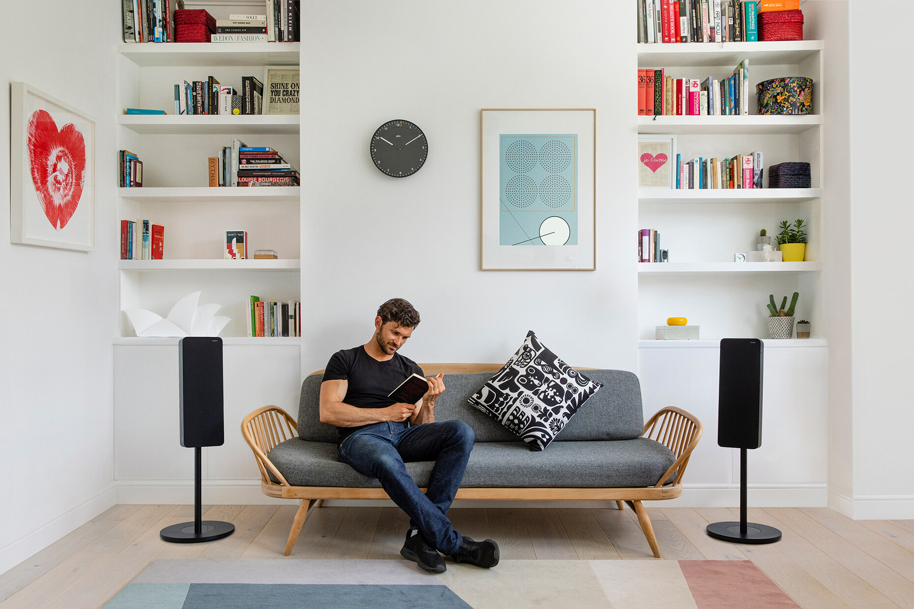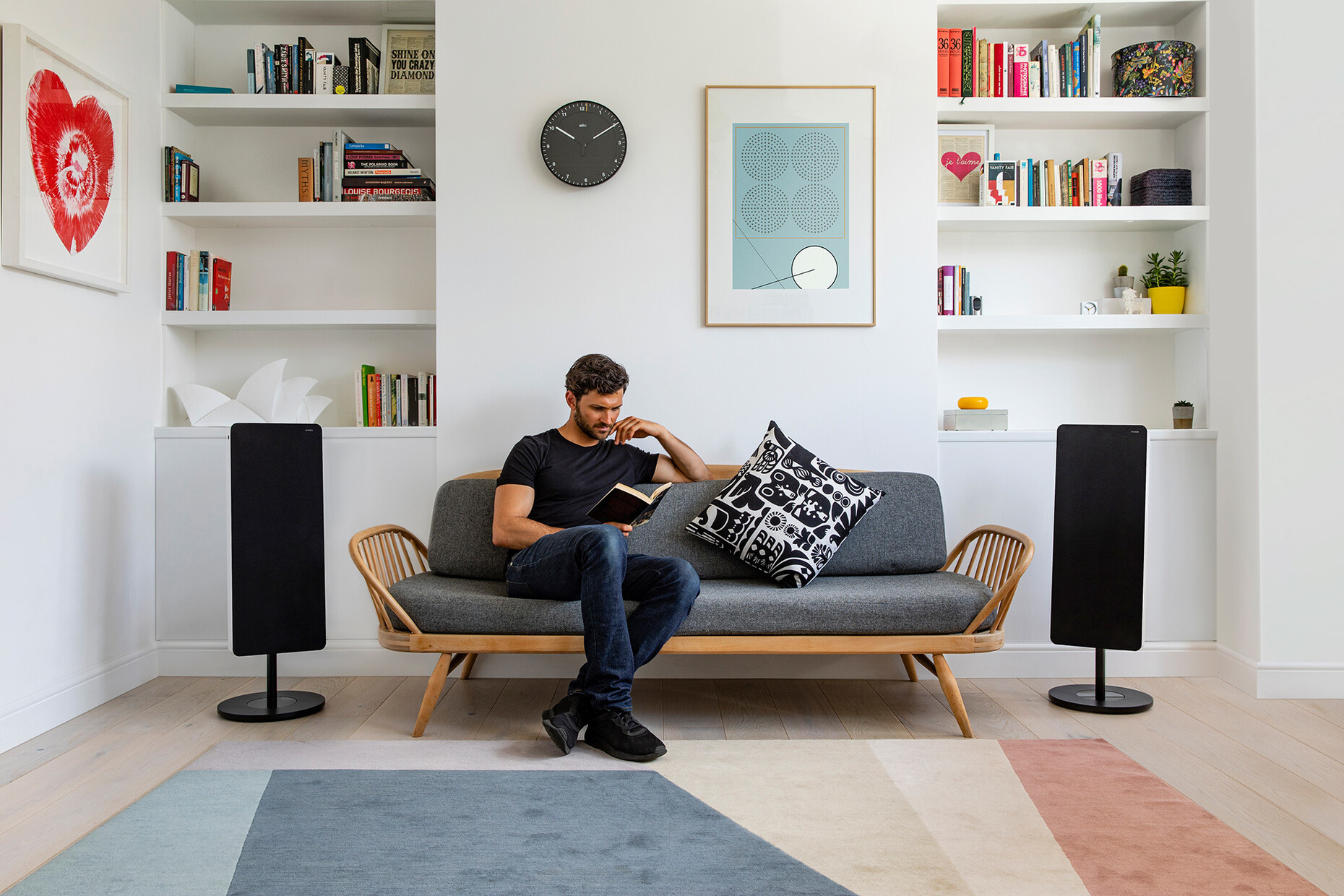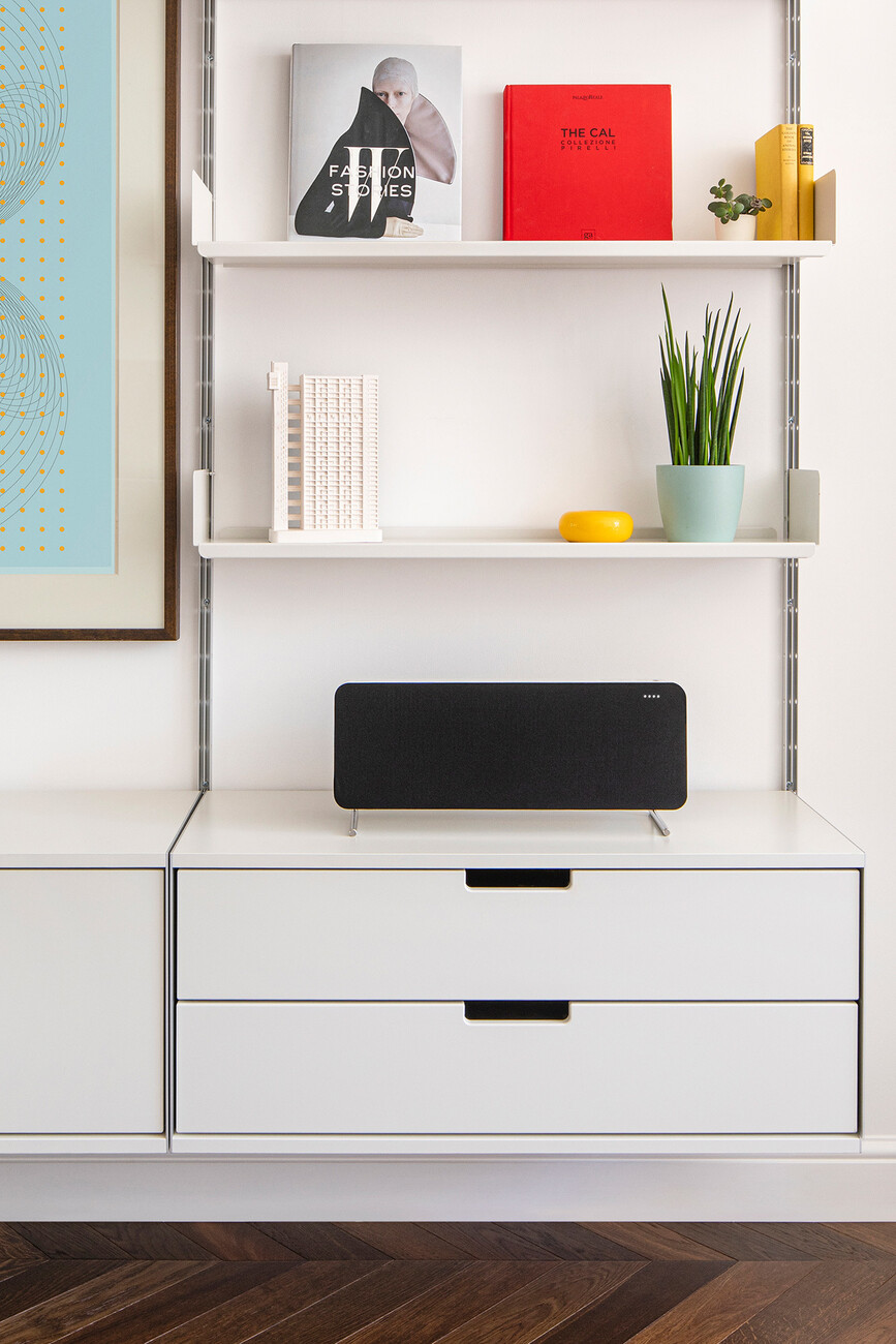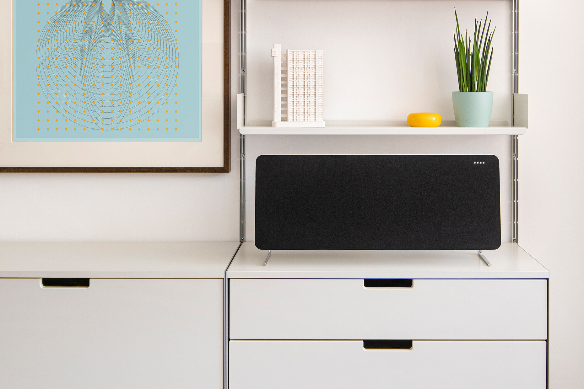 Incidentally, as Grabes describes the design process, it has always been the case at Braun that the designers have taken their lead from function and technical specifications and have then simply clad them in good industrial design. Accordingly, as he goes on to explain, something known as BMR (balanced mode radiators) technology makes it possible to construct very flat housing without any loss of sound quality. And in all three models, this housing consists of an anodized aluminum frame, while the fronts of the appliances have a textile covering. The designers devised this covering with a kind of miter of the kind used in furniture construction, meaning that almost no seam is visible between the frame and the cover. Such details underscore Braun’s aspiration for the future – to play in the same league as Bang & Olufsen. In terms of price the new loudspeakers are also aimed at the latter market segment.
