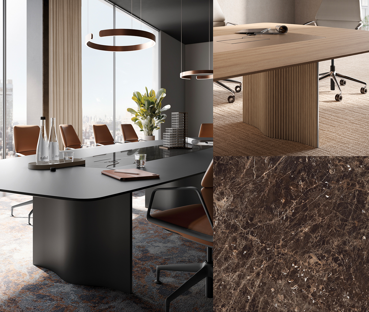 A table is a table – until it can do more. Until it not only fits into the room, but also helps to shape it. ‘wave’ by Brunner is such a table. Not an off-the-peg piece of furniture, but a system that addresses the context – architecturally designed, adaptable down to the last detail, form-conscious and functional at the same time. What appears at first glance to be a sculptural gesture is the result of consistent reduction. ‘wave is a table range that allows large table systems to be created from just a few parts: two or three side panels and a table top,’ says designer Markus Jehs from the Jehs+Laub studio. The characteristic wave shape is more than just a design statement – it also serves as integrated cable management, shapes the structure and defines the character. In addition, there is a wide variety of table top options in terms of size, material and surface finish. Further exclusive customisations are available on request, such as the version with an elegant inlay in metal or natural stone/marble.