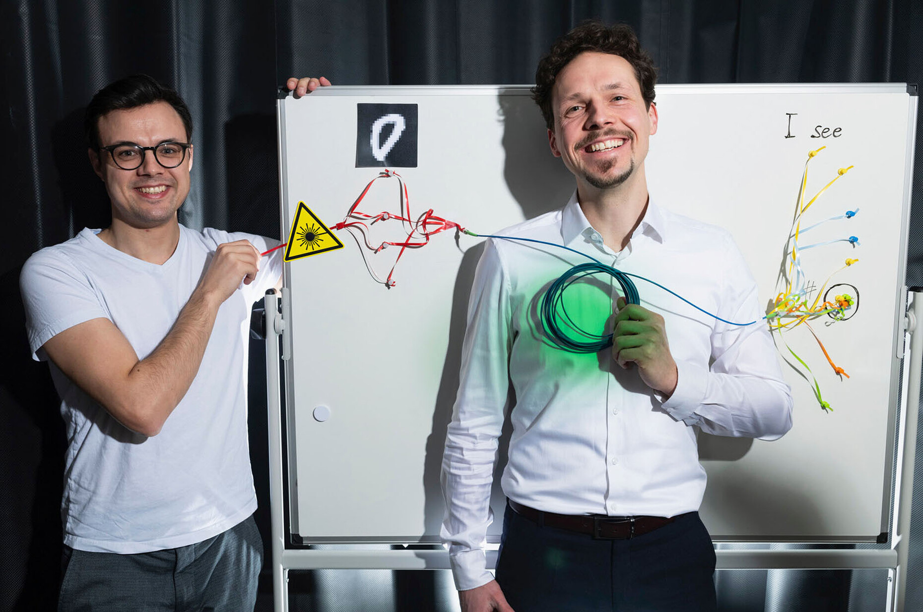 Dr Chemnitz: We are talking about two different fields of application when it comes to computing with light. The first end is to replace the digital computing structure that we currently have in a computer. We are working towards high-end processors that make it possible to easily calculate general artificial intelligence. Instead of the graphics card for the important vector-matrix multiplications that are crucial in a neural network, we are trying to develop photonic processors or optical processors that can perform exactly these vector-matrix multiplications. The beauty of light in this context is that it happens with almost no energy input because we can represent vector-matrix multiplication with natural physical processes. This sounds very complex at first, but we are actually talking about simple light diffraction on data-laden structures. The energy is then only in the light source and in the detection. We also hope that we will be able to make the computing processes more compact and integrate them into a single computing unit. In the second and best-case scenario, we could create freely programmable, deep networks using a fully optical computing architecture. The data would then no longer be stored on a hard disc, but in the light field. With the help of optical neural networks, AI applications could be accelerated in an energy-efficient manner.