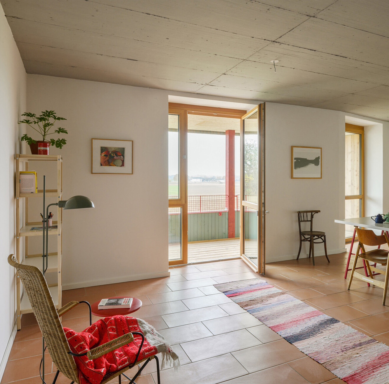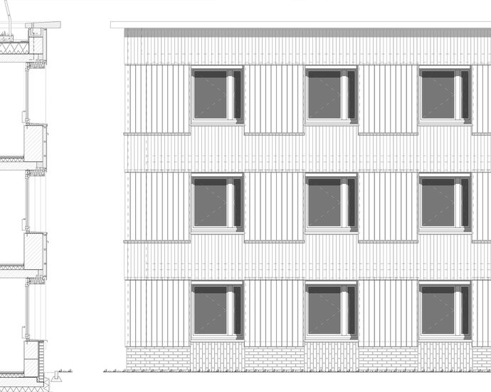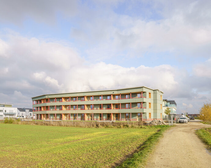 One of the first buildings of its kind in Bavaria has now been completed, and the first residents moved in in November: in Ingolstadt, the architectural firm nbundm* has built a “house with almost no heating” for the Ingolstadt Non-Profit Housing Association (GWG). As part of a concept tender, the client and architectural firm jointly applied to the city for the planning of the property on Steigerwaldstraße on the western edge of Ingolstadt. This is where the city literally ends, with the new building located directly on the edge of a field. Regardless of a name like “Building Type E,” according to Chris Neuburger, the building's architect, GWG has long been operating according to precisely those principles that are now labeled “Building Type E.” Standards and regulations have always been critically questioned here, and planners have been given an in-house catalog of requirements that is at the lowest possible level, always with the aim of minimizing construction costs and thus providing affordable and livable housing. And so, in the case of the “house with almost no heating,” the eligibility criteria for social housing were initially taken just as seriously as the locally applicable parking space ratio. As a result, it was possible to dispense with the construction of an underground car park and use around €1,000,000 in construction costs, which would otherwise have disappeared underground – and provoked compliance with further standards – for other things. Neuburger says with a smile: “If you always do your job by the book, you'll run into regulations.” But when you encounter builders who are willing to think outside the box, who are willing to realize different forms and layouts of housing and at the same time take advantage of subsidy programs, “the end result is a building that doesn't invoke so many DIN standards.”