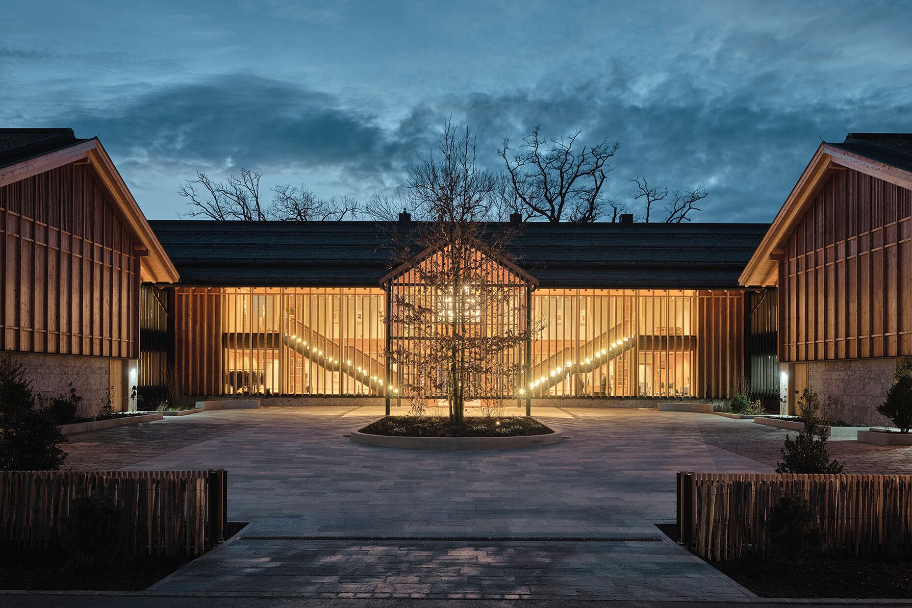 From the street, the Chiemgauhof is hardly recognisable as such. The three buildings in the nature reserve near Übersee are staggered parallel to each other in an east-west direction towards the Chiemsee beach and connected to each other. Larch wood envelops the unobtrusive façades, just like the agricultural buildings in the surrounding area – a special feature of the regional vernacular architecture. ‘We have translated the special charm of the old wooden barns into the here and now, and over time, nature will do the rest and give the entire hotel a beautiful patina,’ says Matteo Thun, explaining the architectural concept. The five-star-plus hotel has a total of 28 rooms and suites with loggias and special features such as private saunas and gardens. Every guest unit has a lake view, making the sunset over the Bavarian Sea an unforgettable experience.
