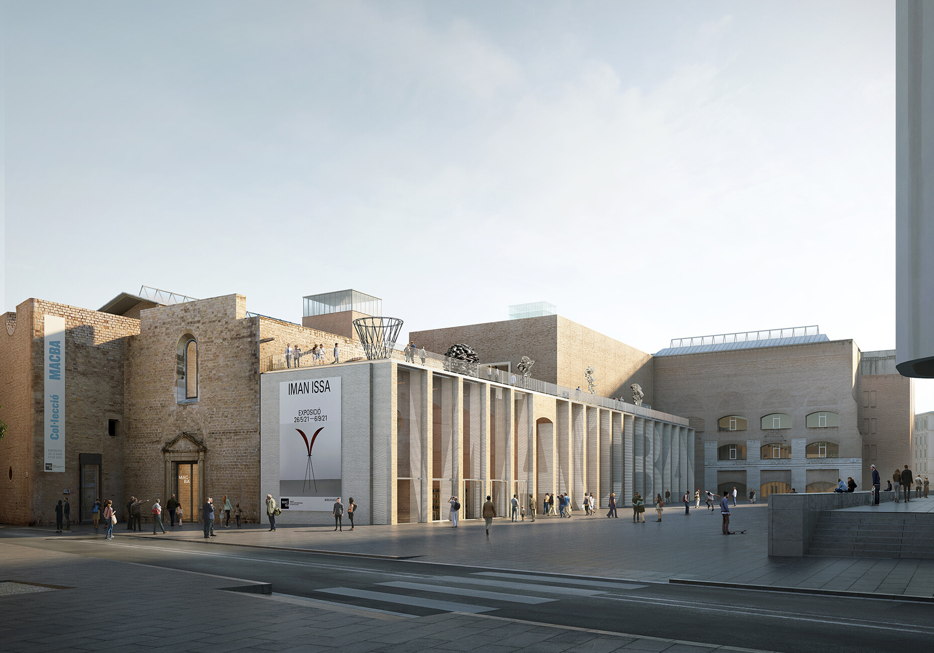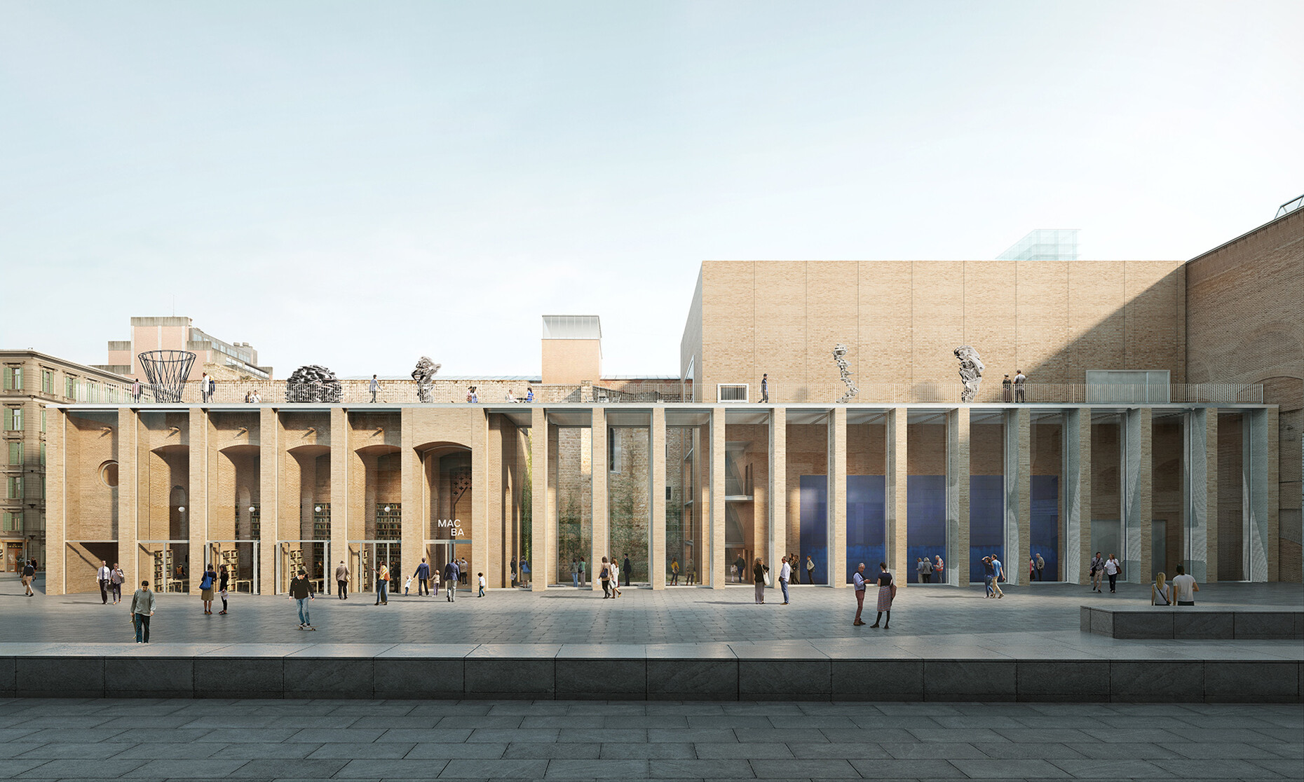 One of the recipes for success here is the choice of materials. The redesign is being executed in sustainable brick. However, the new MACBA will also be reconciling references from all kinds of different contexts, from the structural and the compositional to the volumetric. A sculpture garden is planned for the roof of the extension. In the apse behind, exhibition spaces are being created on three levels. The new MACBA is connected to Meier’s edifice by means of an underground passageway. There is already an underground parking lot beneath the square. This central, urban location represents a challenge as far as the architects are concerned. “The MACBA is situated on one of the busiest squares in Barcelona,” report the architects. “Our extension, which we are designing in collaboration with H Arquitectes, has been planned as a terraced, open building, which is actively involved in defining the shape of the plaza and complements it.”