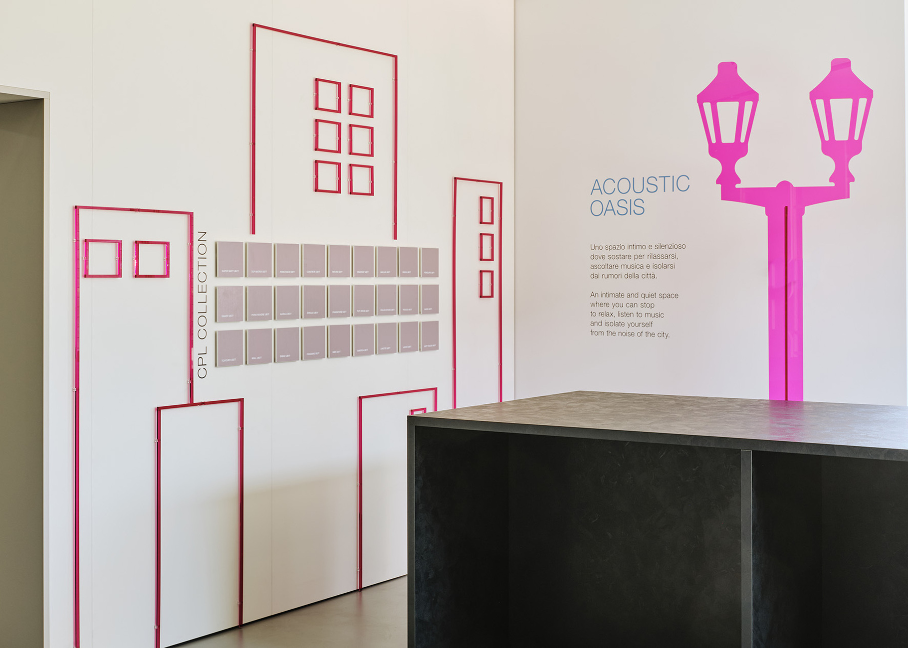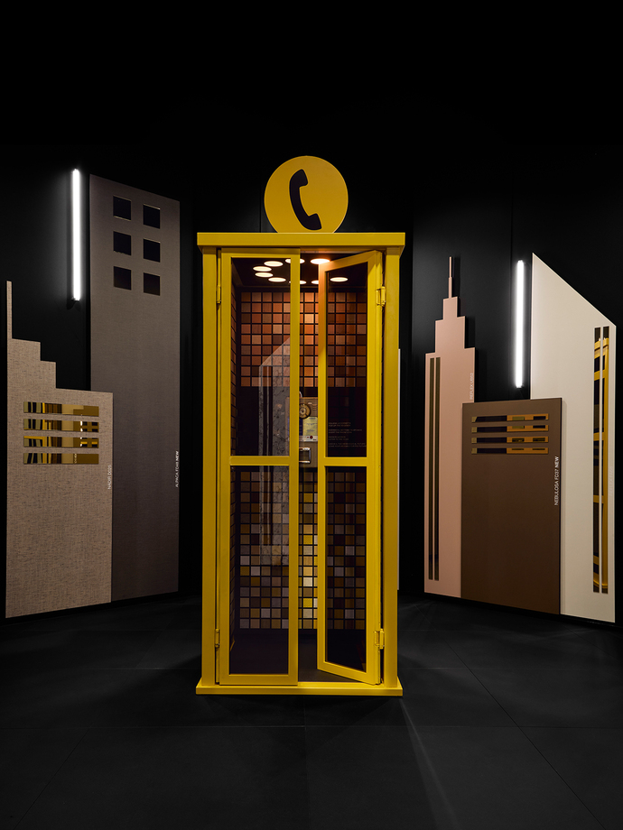 Roberto Caspani: The event-installation by Calvi Brambilla and Partners at the Pirelli HangarBicocca plays on the connection between past, present and future. A very long curved table runs between The Seven Heavenly Palaces, a permanent work by Anselm Kiefer, representing the desire to connect people to build the future together. The long table and 300 chairs are specially designed using some of Cleaf's textures. The future is then represented by a DJ set: the DJ's station is set up in an oversized phone box, while in the background, visuals created from the maps that characterise the textures of the Cleaf surfaces are projected. Vudafieri-Saverino Partners' installation for the corporate showroom CCube transforms the iconic SIP phone box of the 70s into an urban shelter in the age of the smartphone. A new way of experiencing shared space through collective or private interactions. At the centre of the stand designed by Bestetti Associati at the Salone del Mobile.Milano, a phone box invites you to stop and leave a message for tomorrow through a temporal answering machine. The phone box is located at the heart of a labyrinth that evokes the chaos of the city, amidst sounds, images and buildings. One concept, the different projects, three different duration – one night, one week, one year – three different architectural firms.