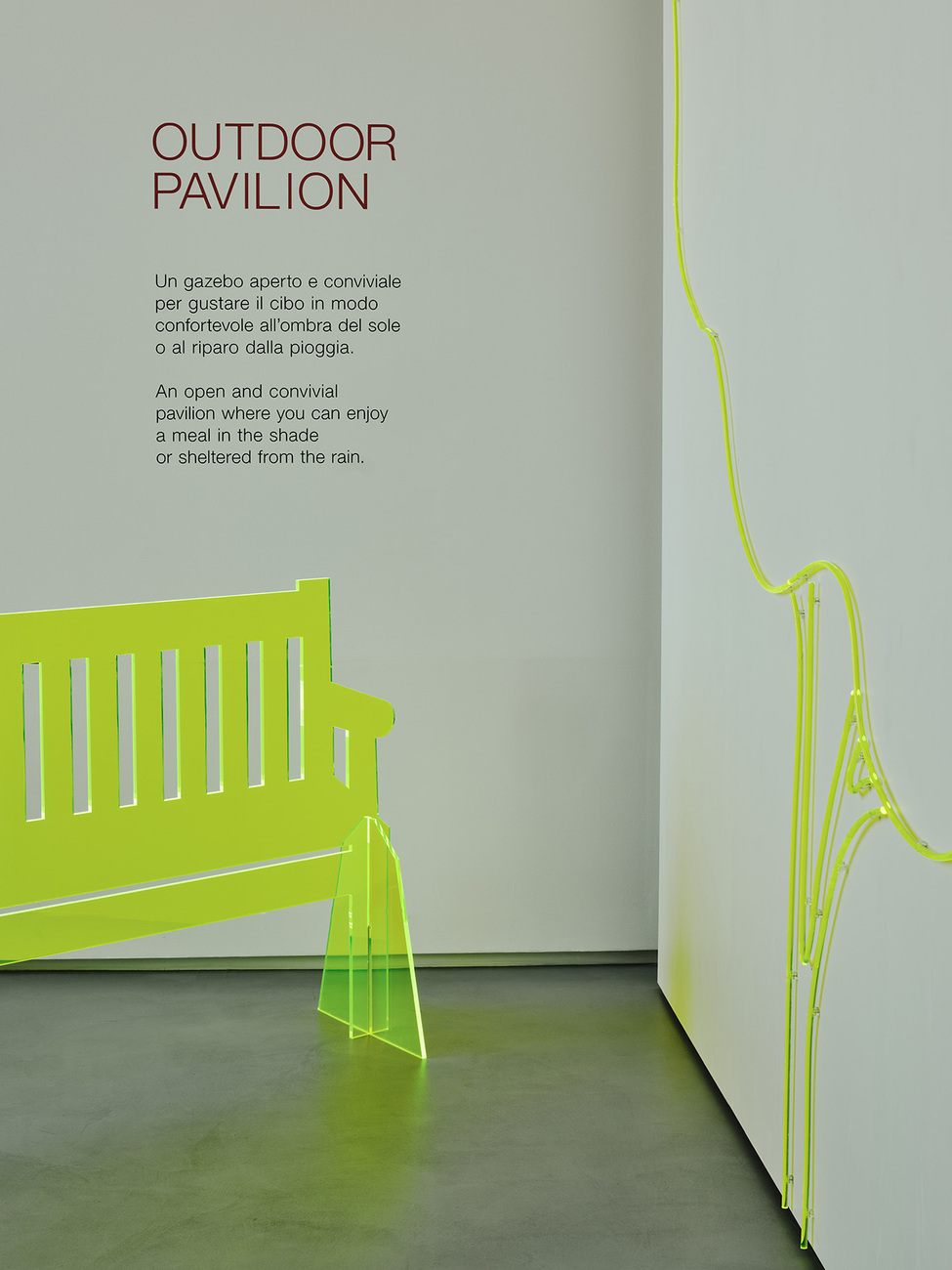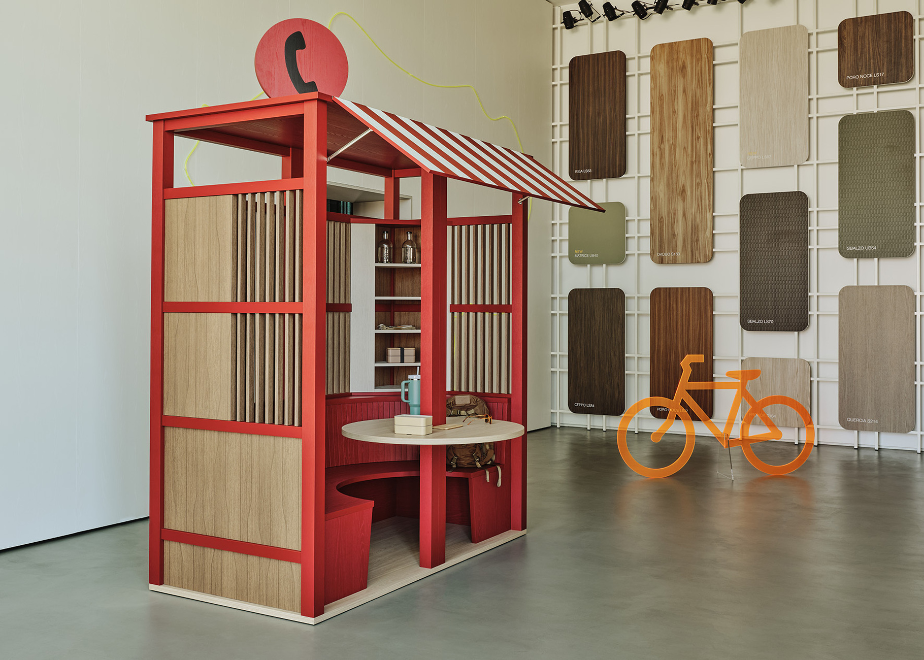 Roberto Caspani: The 70s telephone box is a symbol of voyage through time, between tradition and innovation. There is a temporal link with the decade in which Cleaf was born, 1975, as well as a meaningful connection. In the 70s, the box was used to connect people via the telephone. This year, we are presenting new functions that will once again connect people. It is a way of conveying the message that we and our materials can adapt to change, bringing beauty to the world around us.