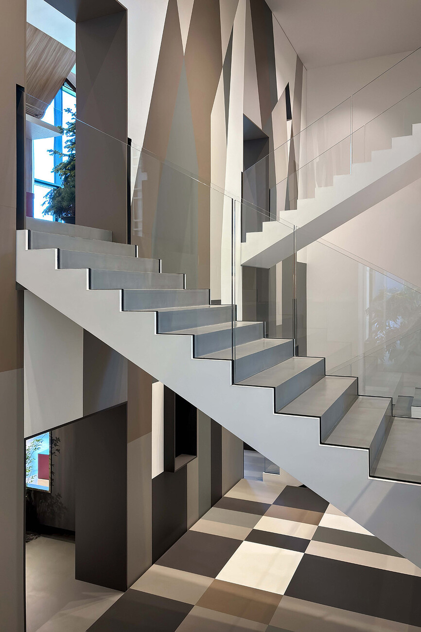 Gerard Martinez und Marc Martinez: We traveled to Lissone to visit Cleaf's central facilities in June 2023. Their team showed us the facilities and explained to us the briefing they had to design the showroom for the 2024 campaign. The team in charge of tutoring the project explained to us that they had thought of: “Developing the design of the four main environments, declining the theme of the small house (Tiny House) in four areas (sea, mountain, city, countryside), combining them with the material effects and finishes of their products (wood, stone on the upper floors, metal and fabric on the lower floors). Solid colors could be used in all environments.” In the same meeting we began an interesting brainstorming process. The project that was being proposed left a lot of room for the imagination. In our studio and after giving the concept many thoughts, our main motivation was to represent the four landscapes proposed in the briefing in an aesthetic and elegant way. The project was developed from a common thread. Inspiring and capturing the four landscapes proposed by Cleaf to transport us and remind us of different places that we have all surely lived at some point in our lives. Conceptual places where we will find various inspiring proposals under the Living Small motto.
