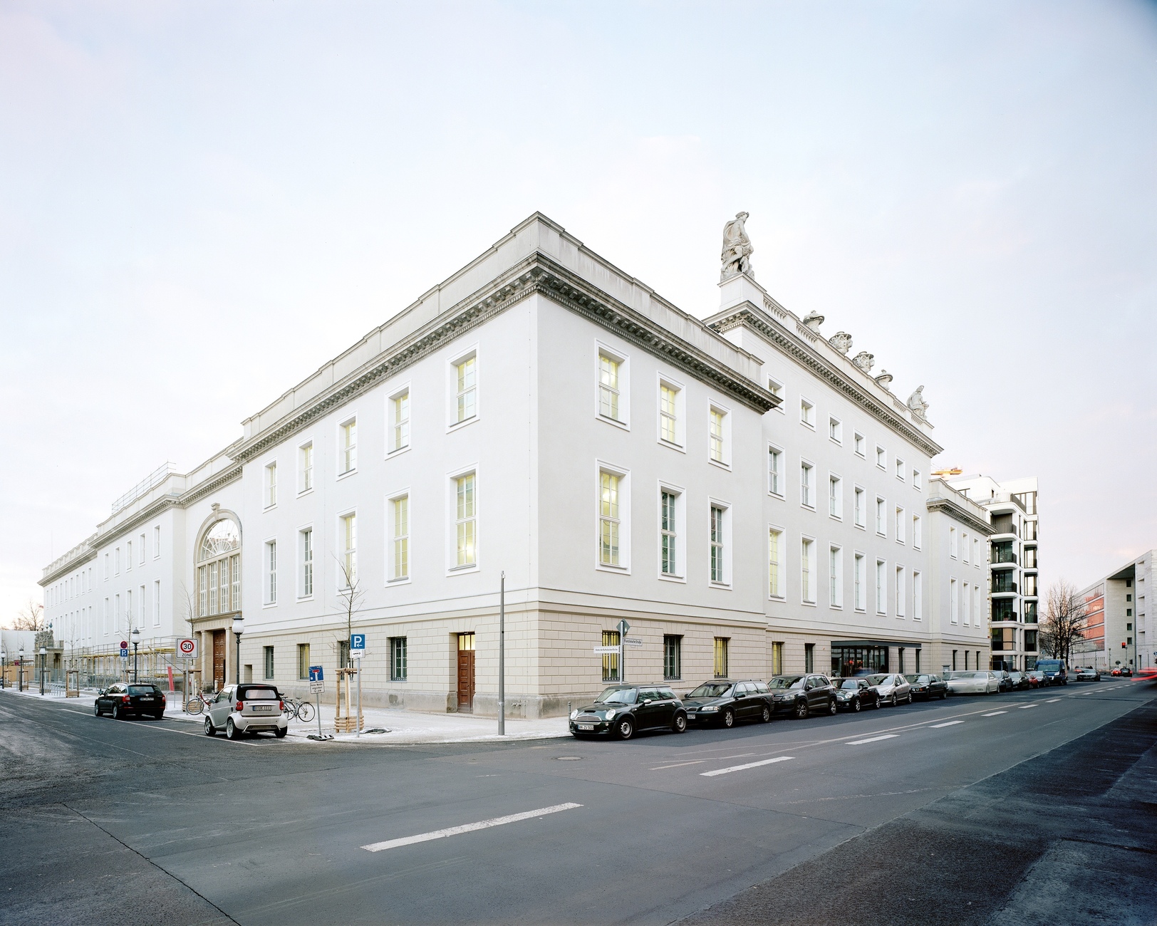 To this end, the Barenboim-Said academy moved into an historical building in Berlin’s Mitte district: the former Staatsoper storehouse for stage sets on Französische Strasse, more or less between Gendarmenmarkt and Friedrichwerdersche Kirche. The listed building with its in-your-face Classicism may at first seem to be a product of the 19th century, but was in fact built in 1951-55 to designs by Richard Paulick and therefore a matter of post-War East German reconstruction. Meaning that when it first opened, the historicizing façade concealed ultra-modern stage workshops, a highly technical machine-house with all manner of stable lifting platforms, cranes and solid metal doors. From today’s angle, it could almost be described as a visionary role model, as now any number of technologically advanced museums, government buildings and department stores lurk behind copies of historicizing facades.