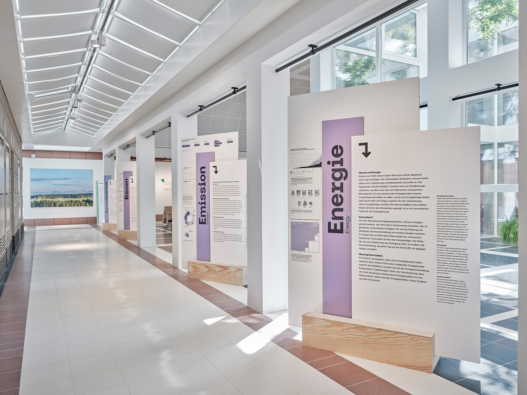 The exhibition project thus spans a wide range of topics, from man-made climate change and its impact on construction to numerous approaches and solutions for a conception of architecture that is appropriate for the age of climate change. The connections and dependencies between energy production and demand, the greenhouse effect and climate-damaging emissions are explained, as are the measures needed to mitigate climate change and the impact of emissions caused by buildings. The exhibits allow visitors to explore the potential of architecture to contribute to reducing emissions and energy demand.