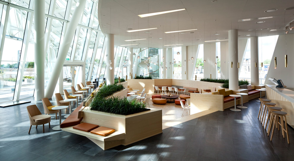 3XN Arkitekter handled the interior design and chose greened walls for the reception area. Photo © Adam Mørk