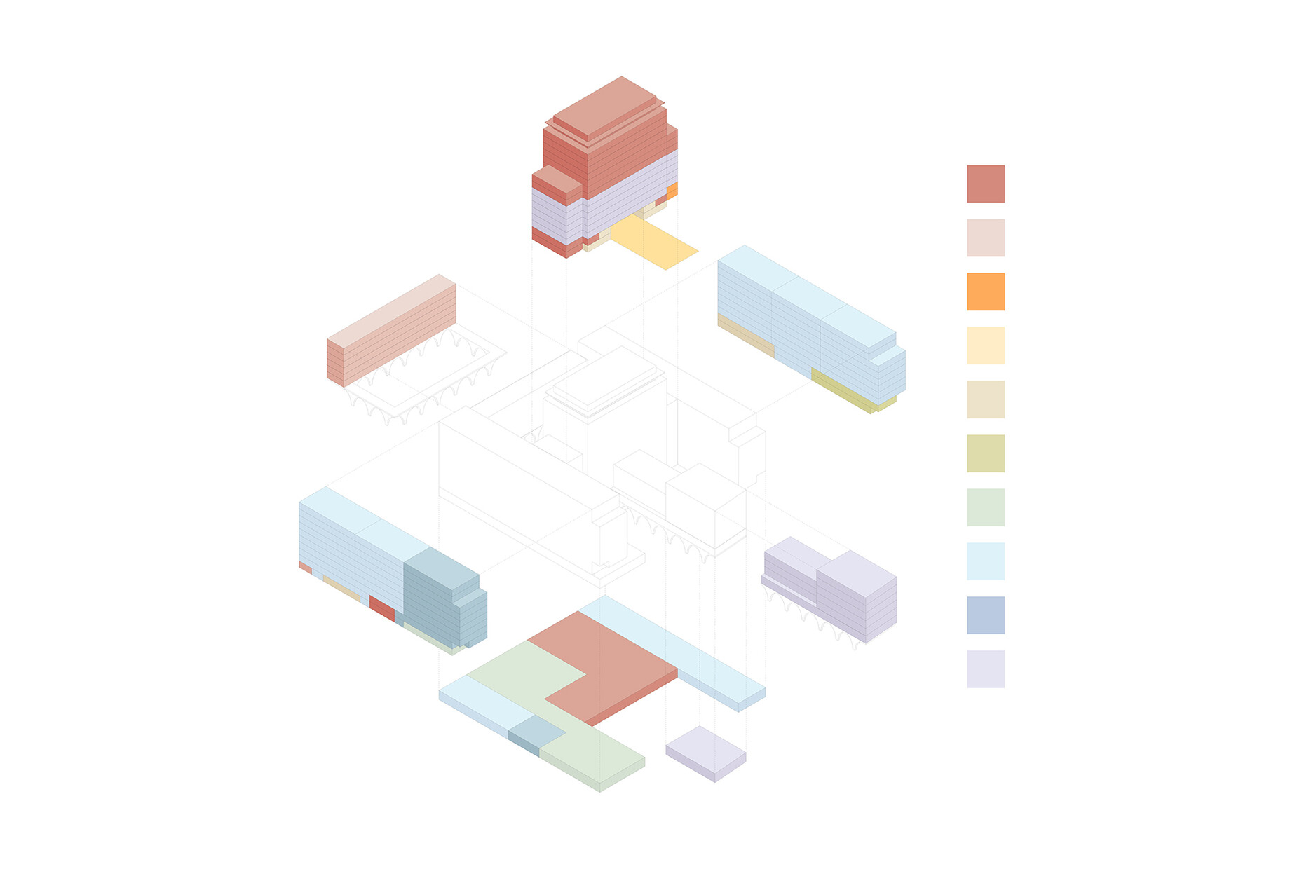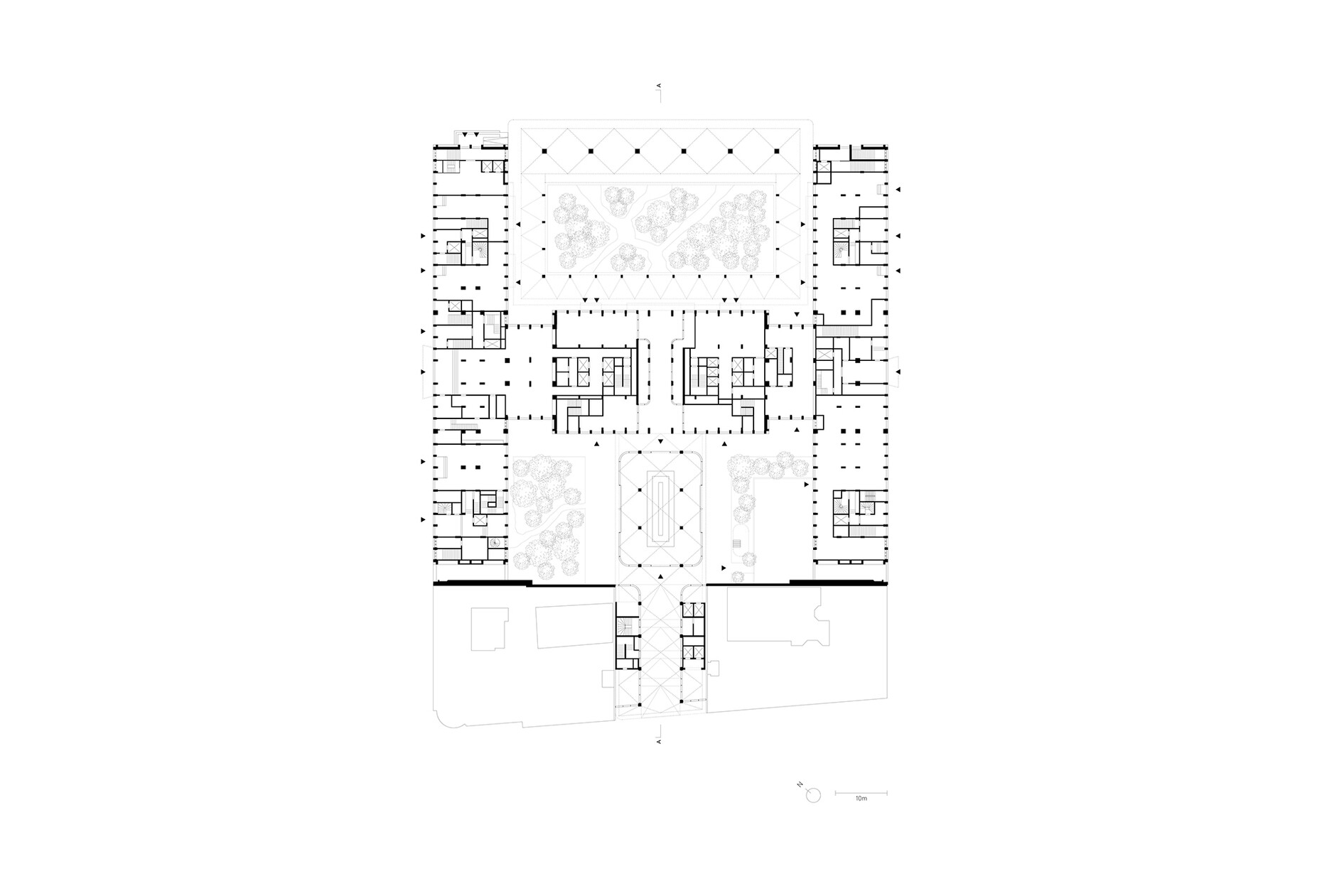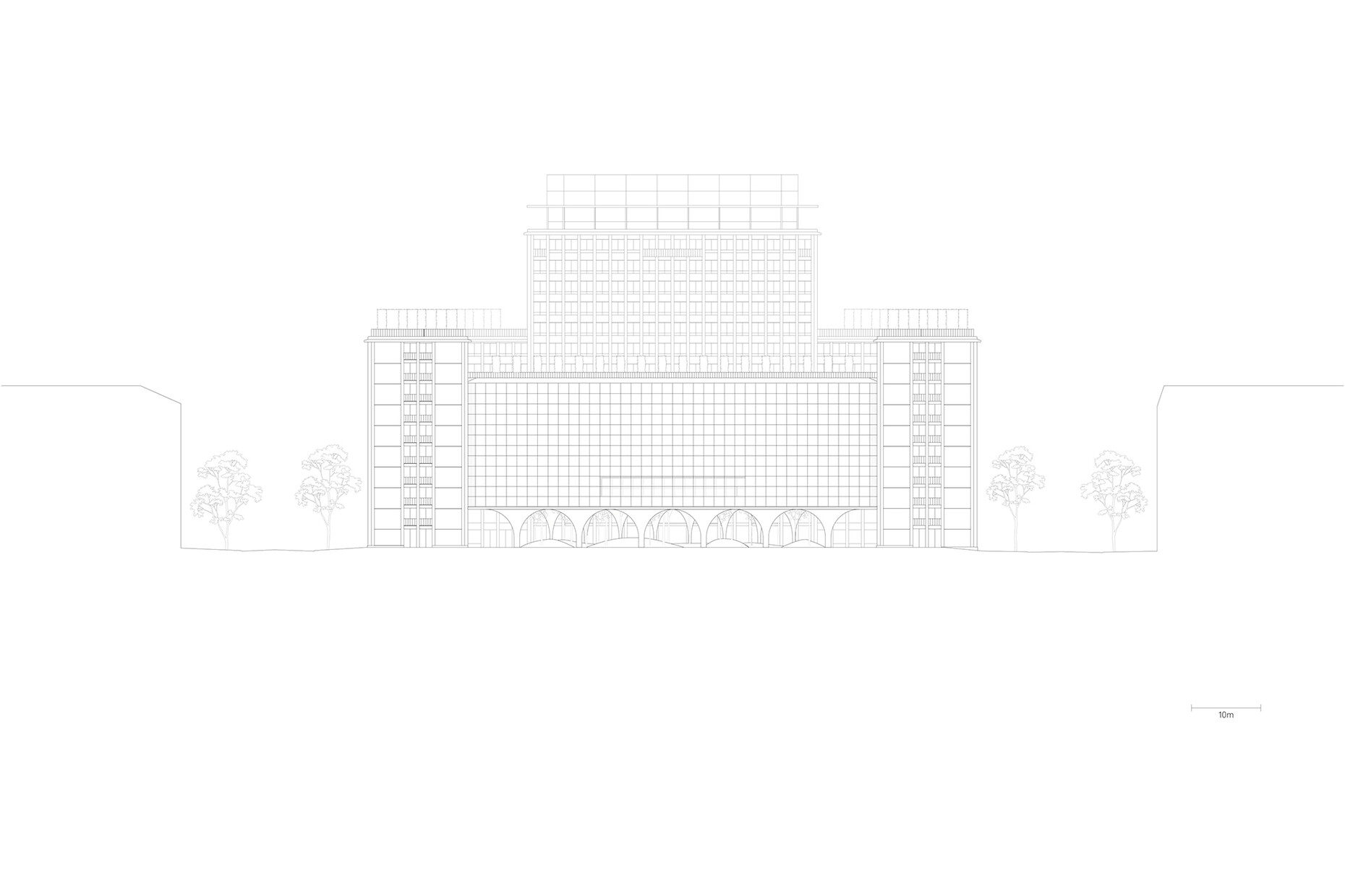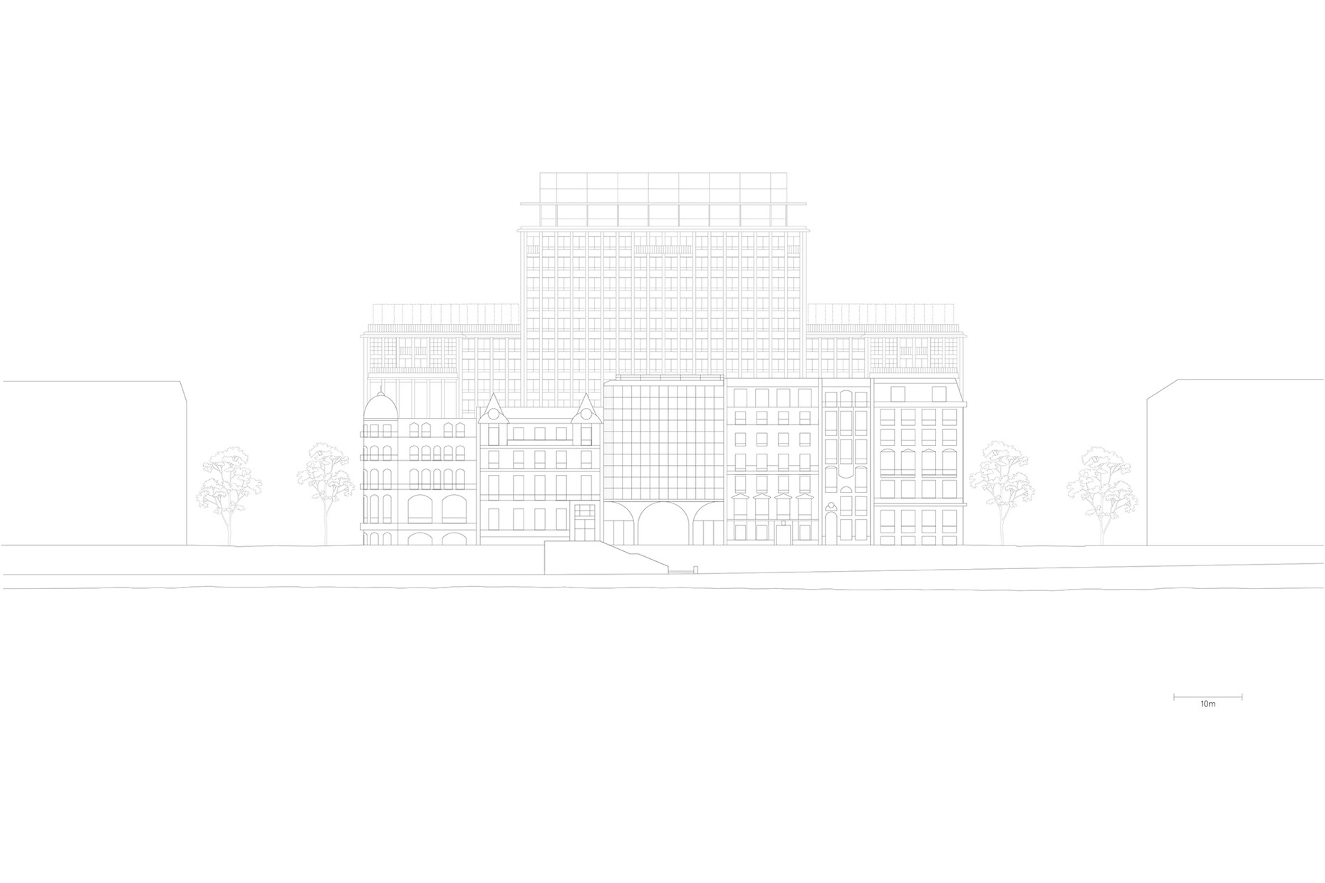 The project goes back to the Réinventer Paris competition, in which various teams consisting of architects, project developers, landscape architects and artists were asked to propose new concepts for 23 sites (squares and buildings) in Paris. The focus was on themes such as mixed use, urban density and sustainability. David Chipperfield Architects developed the project as a kind of campus, which was created in collaboration with Ólafur Elíasson and Sebastian Behmann from Studio Other Spaces and the landscape architects Michel Desvigne Paysagiste, among others, and which is intended to serve as a beacon for the surrounding district. To this end, they added two annexes to the existing 16-storey, H-shaped building, one towards the Seine at Quai Henri IV and the other along the Boulevard Morland on the other side. The first fills a gap between the existing buildings that connect to the Morland Mixité Capitale, while the second extension on Boulevard Morland is an elongated rectangle that delimits the previously open forecourt.