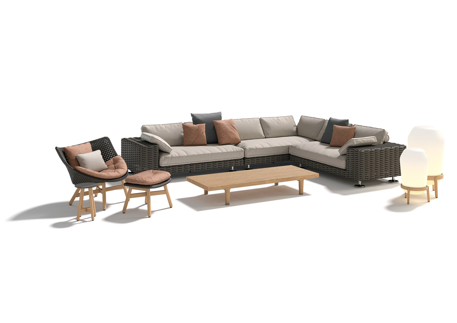 Large, round stands made of stainless steel also ensure a stable position in the garden: with "PAROS", Jean-Marie Maussaud has created a collection of seating furniture for Dedon that convinces right down to the details. For example, the armrests and backrests are each wide enough to sit on - a welcome element when the casual round of guests is larger. The style of "PAROS" is Mediterranean: the Dedon fibre has been harmoniously woven around the frame of powder-coated aluminium. The structure is reminiscent of the art of weaving with wicker and the matt brown shade "silt" also contributes to a natural impression. Easy to maintain and weather-resistant, the fibre specially developed by Dedon ensures that the lounge collection will be a long-lasting companion. With versions as a 2-seater sofa, 3-seater sofa and a selection of modules, this is meant to be flexible and can be arranged into many formations. And thanks to the generously upholstered seat cushions and numerous cushions and bolsters, the comfort is so luxurious that the mild summer evenings are welcome to last a little longer. (am)
