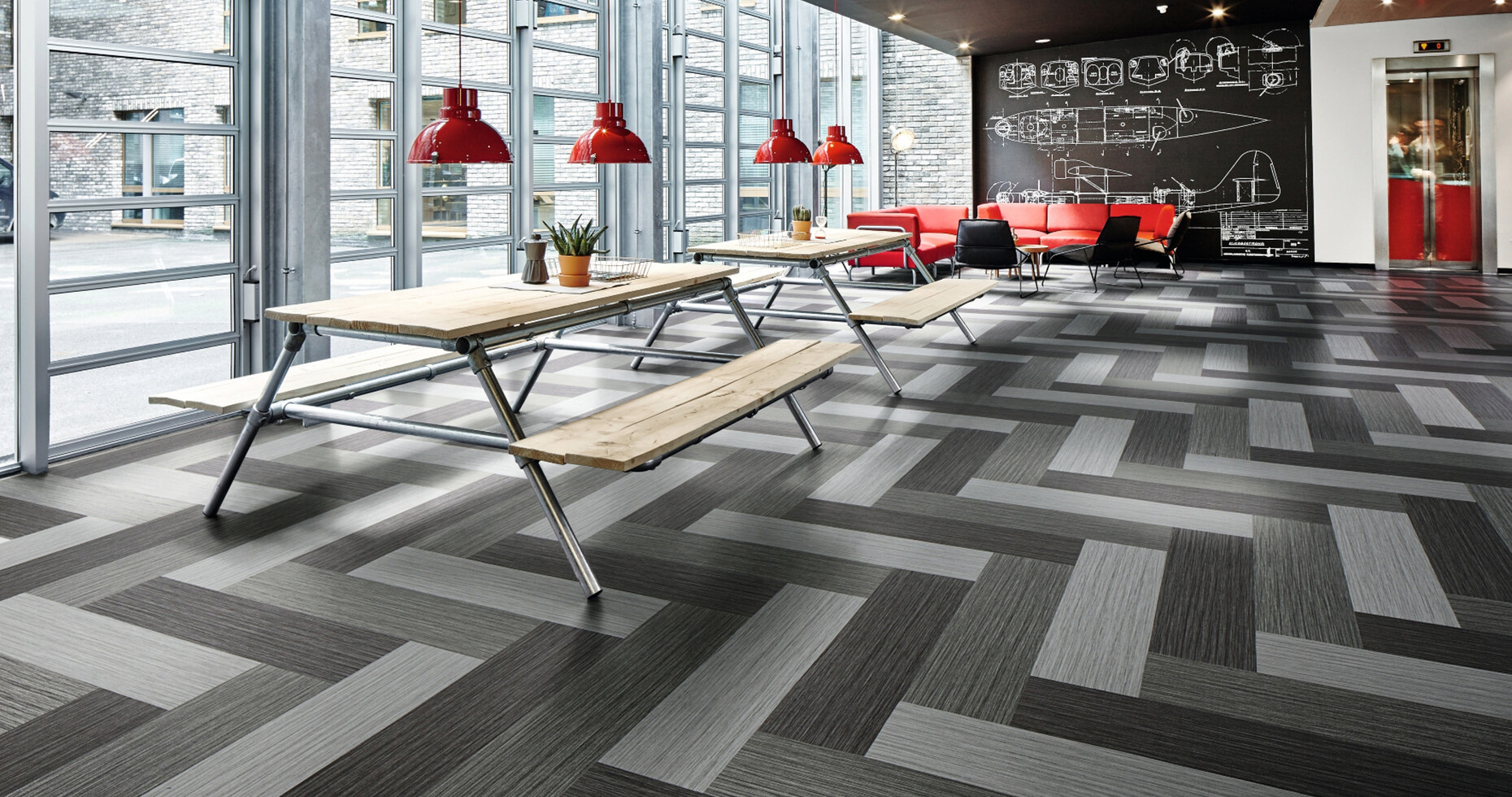 A new tufting technology with structured loops has enabled the Danish company Fletco Carpets to produce patterns in up to four colors with no printing required. This is the case too with one of the exhibition’s innovations, “Stony Beach”. Thanks to their special reverse side made with “TEXtiles”, these carpet tiles are produced entirely without PVC and bitumen. What’s more, the pattern edges do not have to match up, so there is less waste. One product that is particularly quick to lay are the “Flotex Planks” from Dutch supplier Forbo Flooring. The 100 by 25 cm elements boast a very dense weave, are waterproof, easy to care for and bacteria-resistant. They are therefore well suited to flooring that needs to be particularly hard-wearing and hygienic. (he)