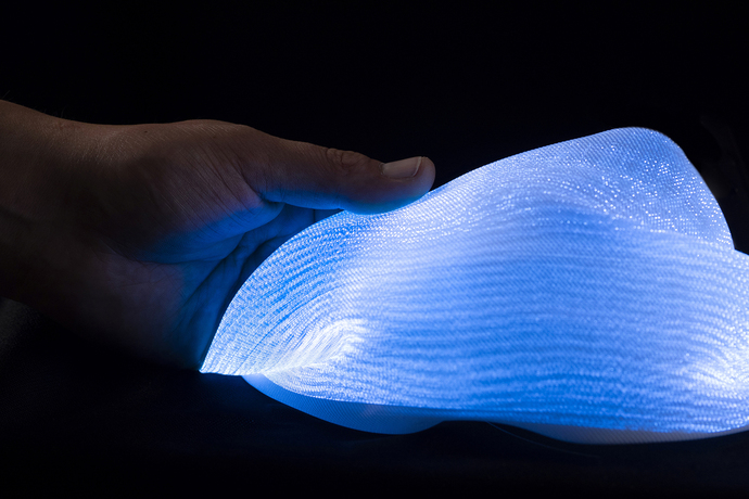 For the advanced “Munda” lighting system, the textile material functions as the conductor: LED sources guide the light into single optical fibers that converge in a ferrule. The fibers can be shaped into spheres, and the lighting solution is therefore especially well-suited for complex construction settings. Another great feature is the toolless technology that enables swift development times. Prototyping or changes to the design can thus be realized quickly, which makes this technical innovation economically appealing for small series, too.