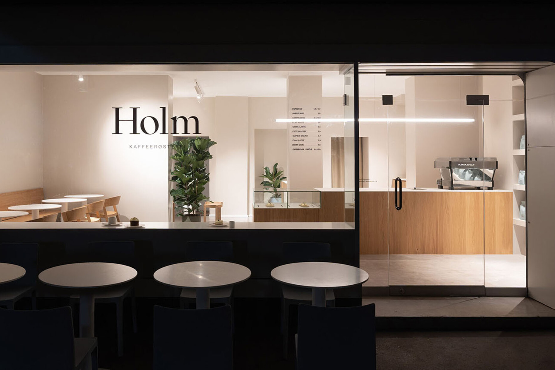 You have designed popular café bars such as the “Van Dyck” and the “Holm” in Cologne or the “Kliewe” in Münster. The look is minimalist, but not too cold. How do you go about creating a modern espresso bar atmosphere? And how would you describe your style?