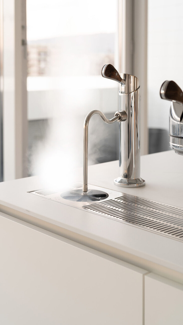 Designstudio Gerdesmeyer Krohn: With “Modbar” all you see on the counter itself is a tap-like element for dispensing the espresso, steam or pour-over. It immediately becomes much airier, minimalist. This enables better communication between the customers and the barista. In the case of the “Modbar”, the interior planning is completely different: You don’t design a counter that has enough space for an espresso machine but realize a counter that fits around the machine. That makes for completely new design potential.
