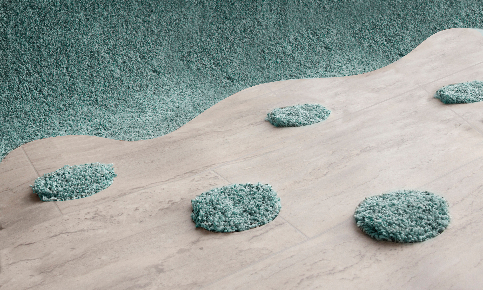 Bilge Nur Saltik, based in Istanbul and London, relies on the shifts between different materials as the defining element in her flooring concept called “Transitions”. At the same time, she plays with contrasts: A hard parquet surface flows softly into a soft carpet material, small parallelogram tiles are linked with vinyl flooring. The connecting system: the cut-outs at the end of a section of material that is then dovetailed with the suitable elements on the next section. This gives the floor an interesting haptic quality and its can be laid without adhesives.