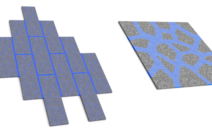 For “Mineralartifical Walking” Parisian Victoria Wilmotte deploys traditional materials such as stone and marble in an unusual way. Small square slabs or irregular fragments are combined using artificial resin and in striking colors. What has otherwise been regarded as an annoying grout is very broad here and thus becomes an equally important part of the design of her novel stone floors. She creates surprising highlights with this kind of joint.