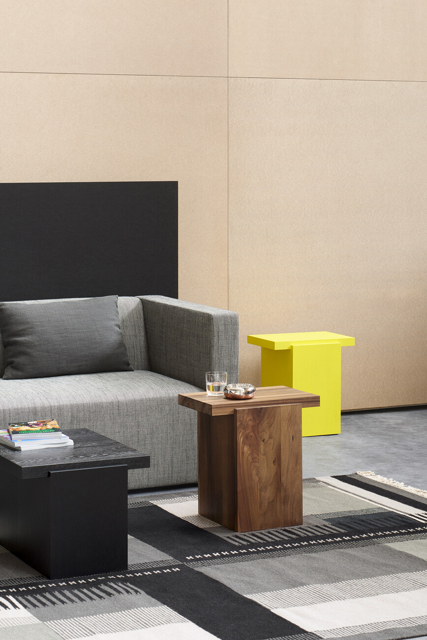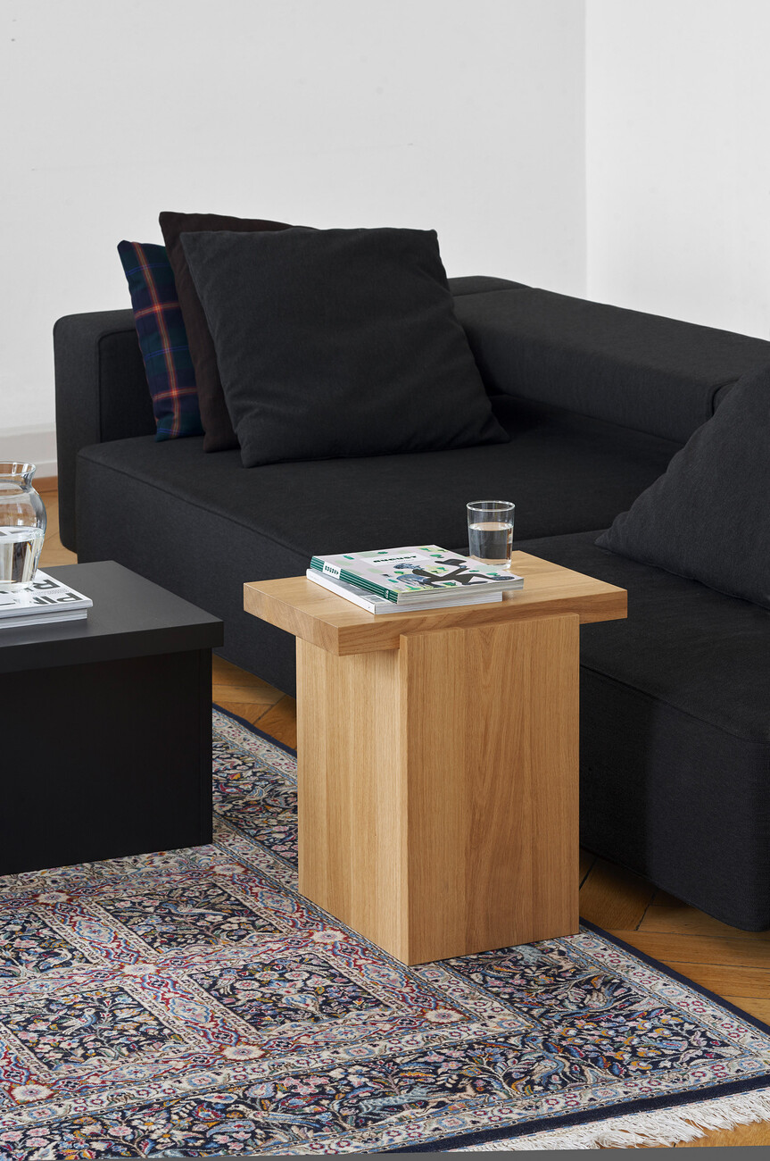 With "TORE", David Thulstrup has designed a family of side tables for e15 that are characterised by clear forms and heavy volumes: Inspired by the Art Deco era, he has created multifaceted monoliths that also work wonderfully in combination as a sculptural landscape thanks to their clear geometry. "For 'Tore' I was inspired by the 1920s, by clear shapes and heavy volumes," says David Thulstrup. Made of solid walnut, European oak or the marble varieties Nero Marquina and Grey Bardiglio, "TORE" is available in three sizes. Variations in different colours such as sulphur yellow and black are also possible. "TORE" cuts a fine figure from hotel to bar – thanks to the optional cable management system, the design by David Thulstrup in the wooden version is also suitable as a laptop table. (am)