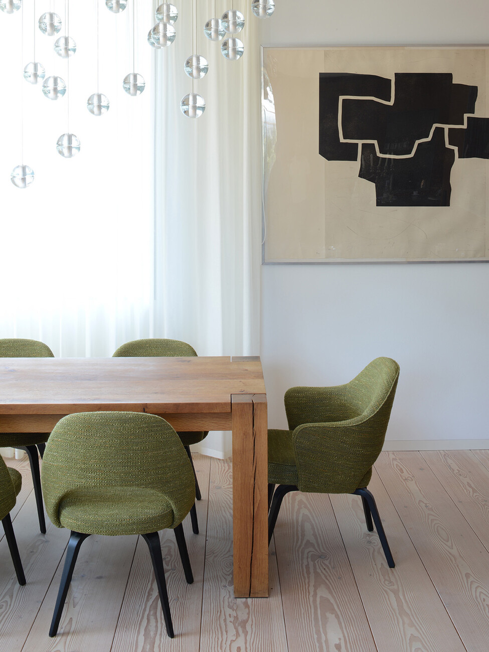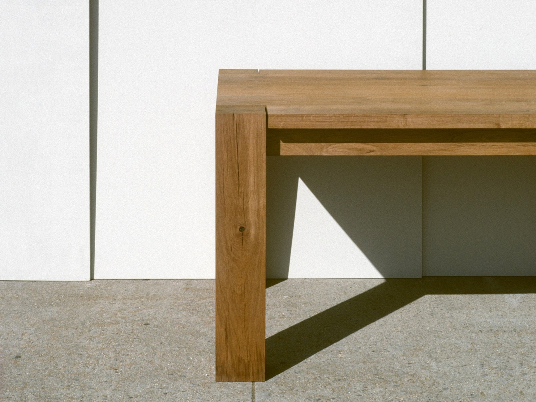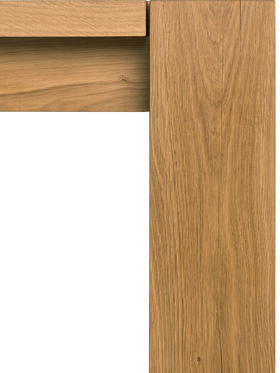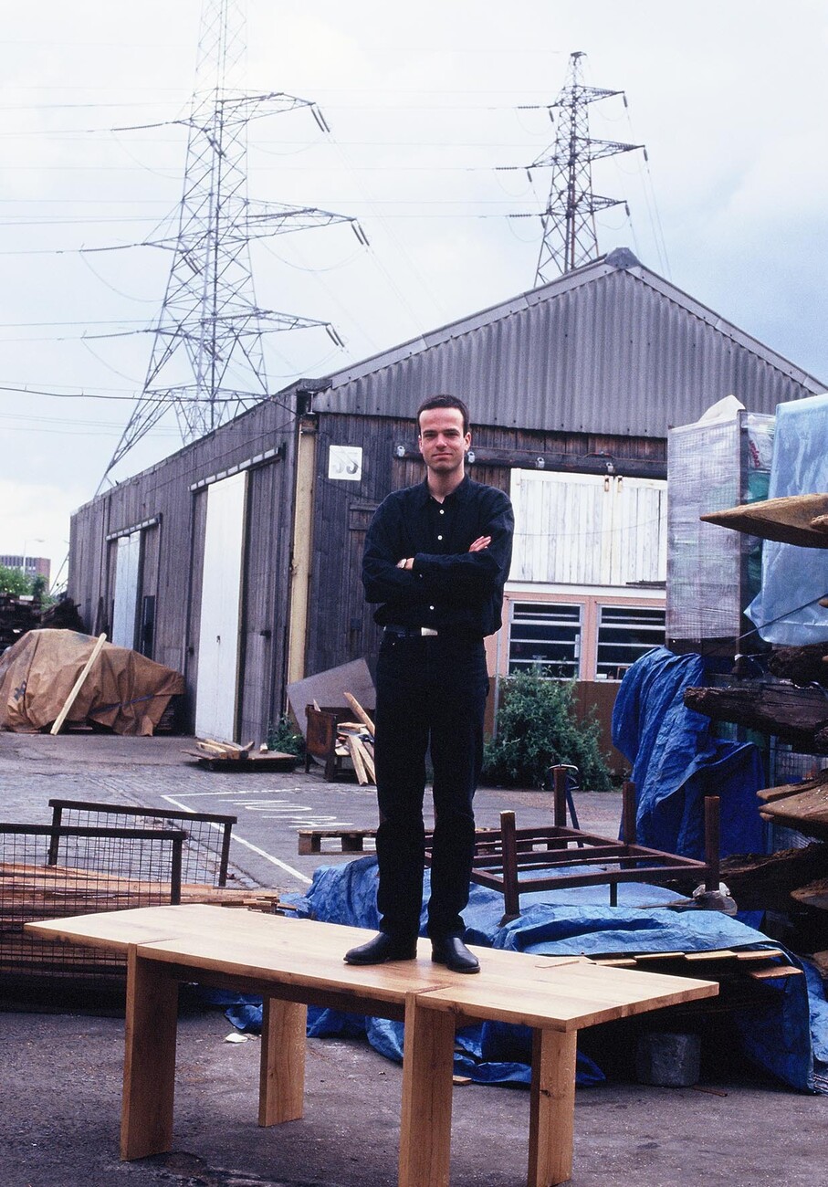 It is impressive, the ‘Bigfoot’: square table legs that stand like pillars in their four places, made from equally wide wooden planks. The rectangular table top does not rest on top of them, but fits in at the edges with a small gap between them, giving them room to make a grand entrance. Each piece is unique. An almost radical simplicity in design, robust and clear. The archetype of the table was created in London in the early 1990s. Philipp Mainzer, born in Hamburg, studied product design and architecture in the British metropolis. A creative boom has been in the air there, alternative ideas were in demand and found the freedom to experiment. In 1994, he designed the ‘Bigfoot’ while still a student. A short time later, together with fellow student Florian Asche, he founded the furniture brand e15, named after the postcode of the first workshop in the East End of London. A few years later, he met the designer and art director Farah Ebrahimi, and together they led the start-up to international success. Today, e15 works with renowned designers such as Stefan Diez, David Chipperfield and David Thulstrup. It was not only the minimalist shape of the table that was revolutionary at the time, the material also caused a stir: While plastic, glass and metal - in short, perfect, cool surfaces – were on the rise, Mainzer experimented with wood scraps. He made the first table from planks from old goods wagons, which show their history: cracks and knotholes, grains and annual rings. For the table legs, he also used the darker heartwood from the centre of the tree – which was still considered a waste product at the time.