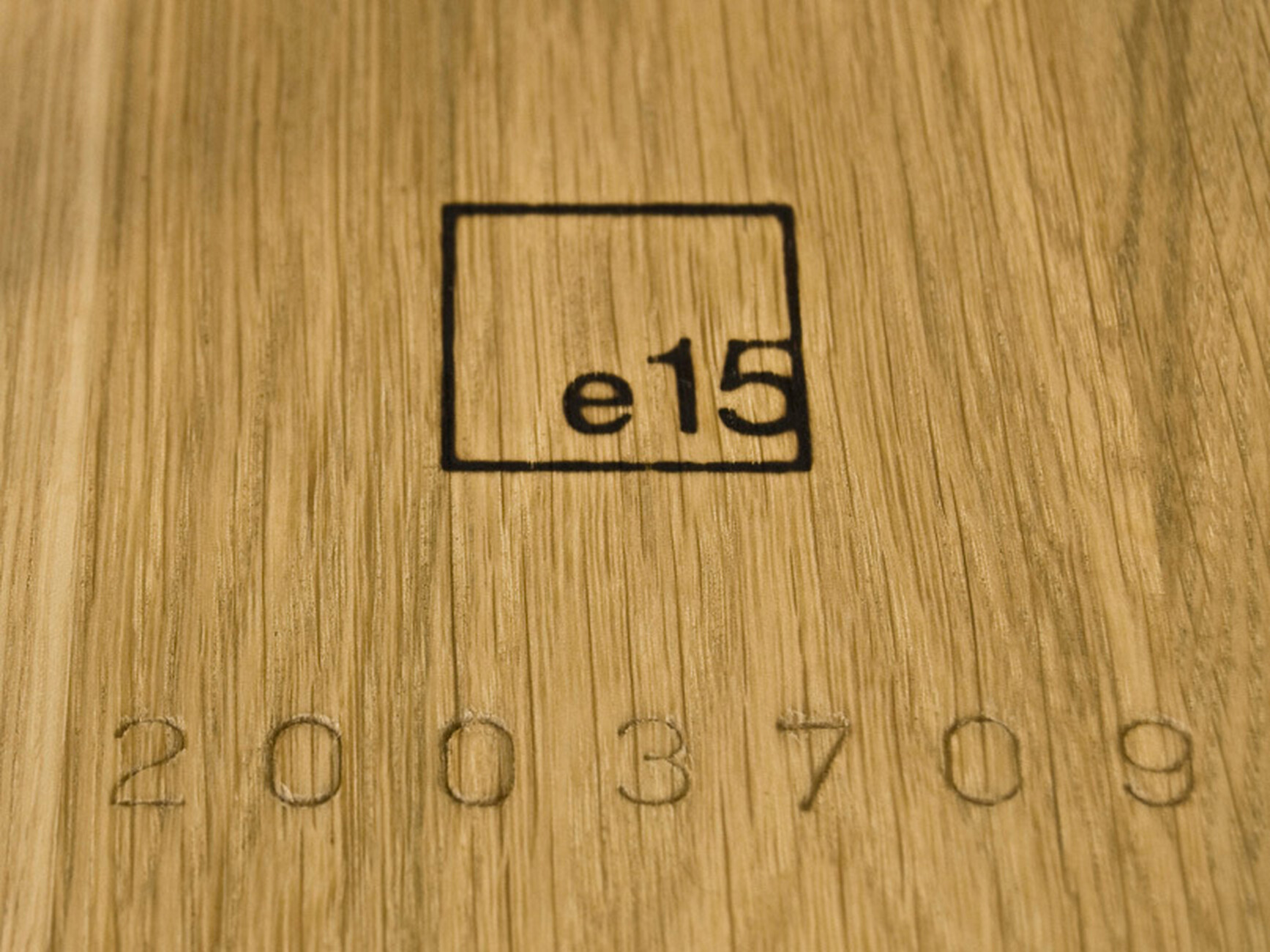 That was 30 years ago, meanwhile "Bigfoot" has gone from rebel to classic. This has done it no harm, as the clear design, the natural material and the long service life of the table could not be more up-to-date. Durability, craftsmanship and environmentally friendly production are what e15 still stands for today. Philipp Mainzer no longer dismantles old goods wagons; instead, the European oak and walnut wood is sourced from sustainable forestry, predominantly from Germany, and is PEFC-certified. The regional network ensures short transport routes and also guarantees the high quality of the furniture. A touch-up with a little oil now and then is all the ‘Bigfoot’ needs. Good ideas are often copied, as e15 knows from its own experience. A glance at the embossed logo and the individual serial number shows that the ‘Bigfoot’ is authentic. This year, a plaque with Philipp Mainzer's signature and a companion: the ‘Backenzahn’ stool made of heartwood, itself a small design icon.