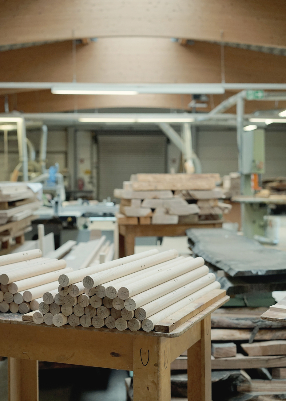 For the furnishings, Spacon & X teamed up with e15. The result was an extremely quirky collection of chairs, tables, stools and coat racks which are a testimony to simple structures and authentic workmanship. The primary material is ash wood with a brown core. The interplay of light and dark wood is particularly effective in the elegantly interlocking side and back struts. Tabletops in Richlite, a sealed composite made of recycling paper and organic resin, give the tables a notable high-grade look. Philip Mainzer, founder of e15, explains why the Spacon & X project suited e15 so well. “For me, in this project the focus was on using natural materials and craftsmanship,” he explains. “These sit well with our approach to our work at e15.” This being the case, the furniture comes into contact with other handcrafted products such as seagrass luminaires produced in collaboration Danish designer Jonas Edvard. The ensemble features a warm range of colors inspired by the four seasons. All in all, the restaurant’s ethos is apparent, so to speak, from the local ingredients on its plates and the honesty of its materials – a harmonious fusion, and not only in terms of the cuisine.