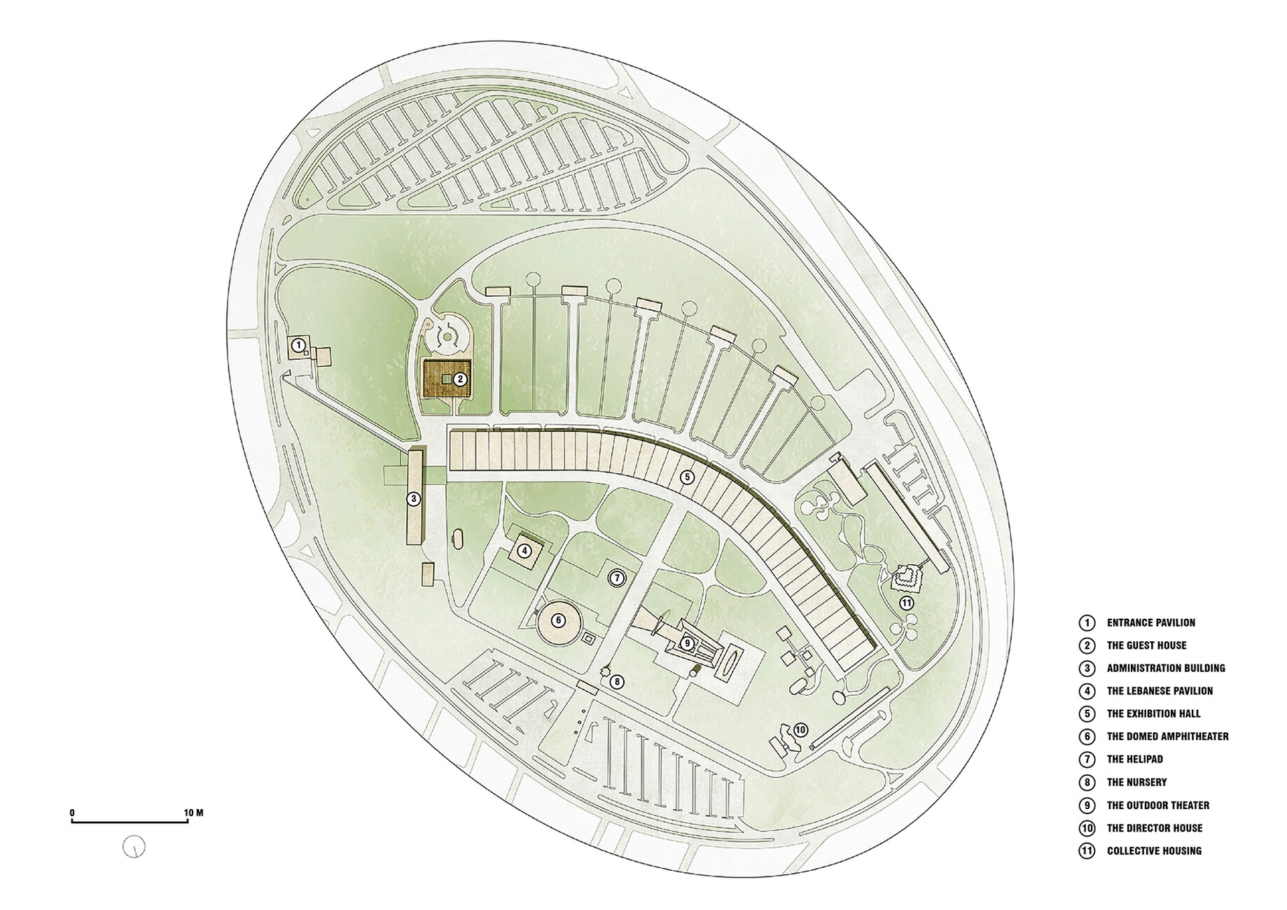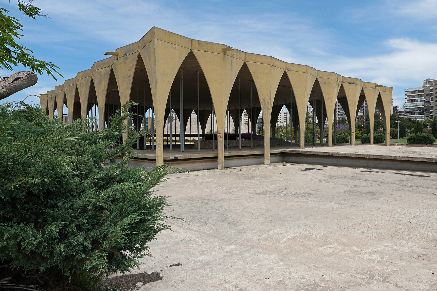 In January of this year, the ensemble, which is set in a well-tended landscape park, was added to UNESCO's List of World Heritage in Danger. Oscar Niemeyer's design is “an outstanding example of 20th-century urban planning and architecture,” according to the text in the application for inclusion on the World Heritage List. Main buildings such as the large exhibition hall, the Lebanese pavilion, the amphitheatre and the director's villa, as well as numerous adjacent buildings, are located on the 72-hectare property. Some of the striking structures have been renovated and remodelled beyond recognition – sometimes with complete disregard for Niemeyer's ideas – or even destroyed over the years, or have fallen into disrepair due to corrosion of the steel and ageing of the concrete. Parts of the fair are also overgrown with trees and scrub.