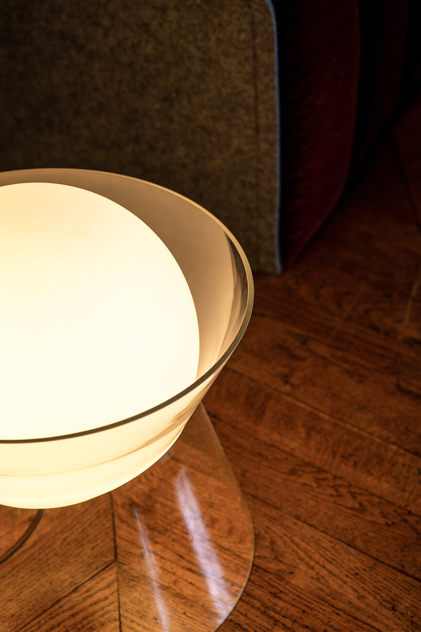 Two of his latest designs also reveal that Emanuele Ferraro – apart from regular visits to his family on Capri – loves to travel, even to the moon in his thoughts. ‘From the moon’ is a hand-blown glass lamp created in collaboration with renowned French furniture manufacturer Ligne Roset. "I had wanted to design a product made entirely of glass for a long time.