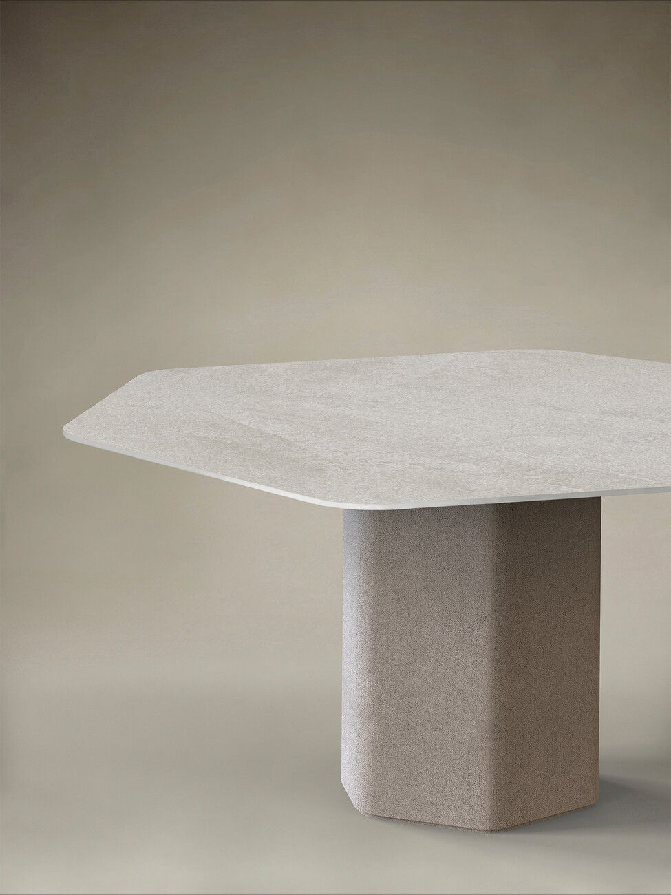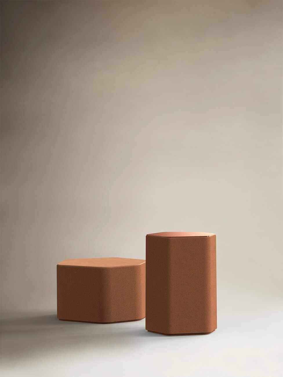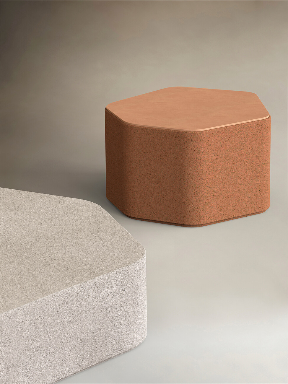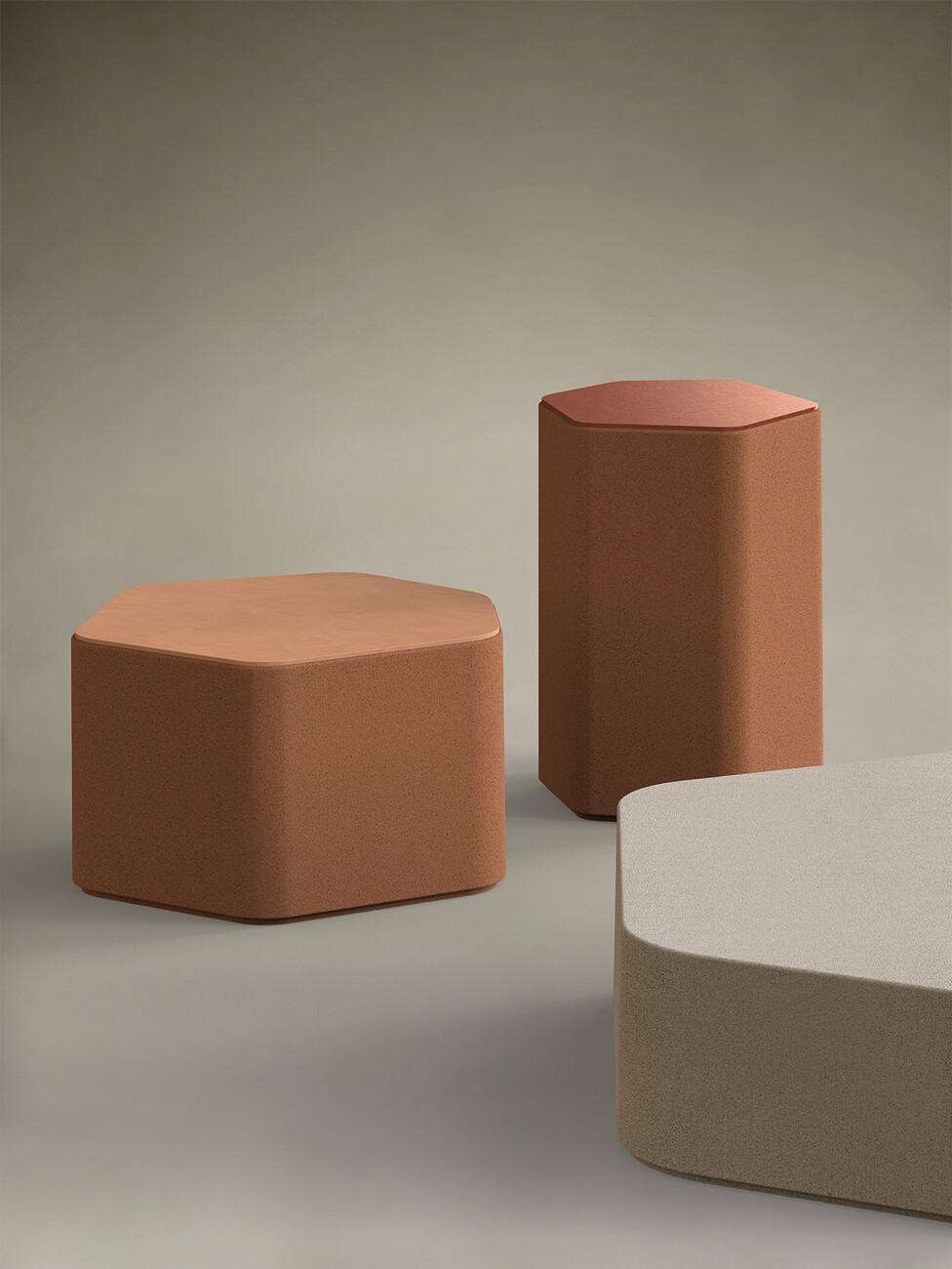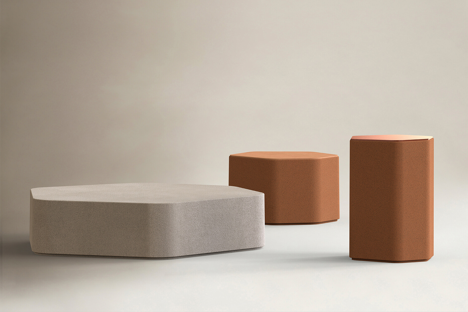 Rocky landscapes, expressive and robust, inspired Studio Altherr Désile Park to create the outdoor collection "Talo". In cooperation with Expormim, the creative trio translated the massive bodies of the stone into three silky-smooth hexagons that can be selected in different heights and sizes. Characteristic of the "Talo" collection is the asymmetrical concrete base. It closes almost seamlessly into a top made of highly-resistant, sustainable materials: Dekton and Fenix NTM®. If the surface needs to be more expansive, a version is also available with a tabletop that extends beyond the base and thus offers space for several people. For the colour scheme, Studio Altherr Désile Park opts for a natural spectrum from stone to slate and terracotta. The outdoor tables thus have a sculptural effect and create a calm centre without themselves becoming too prominent. (am)
