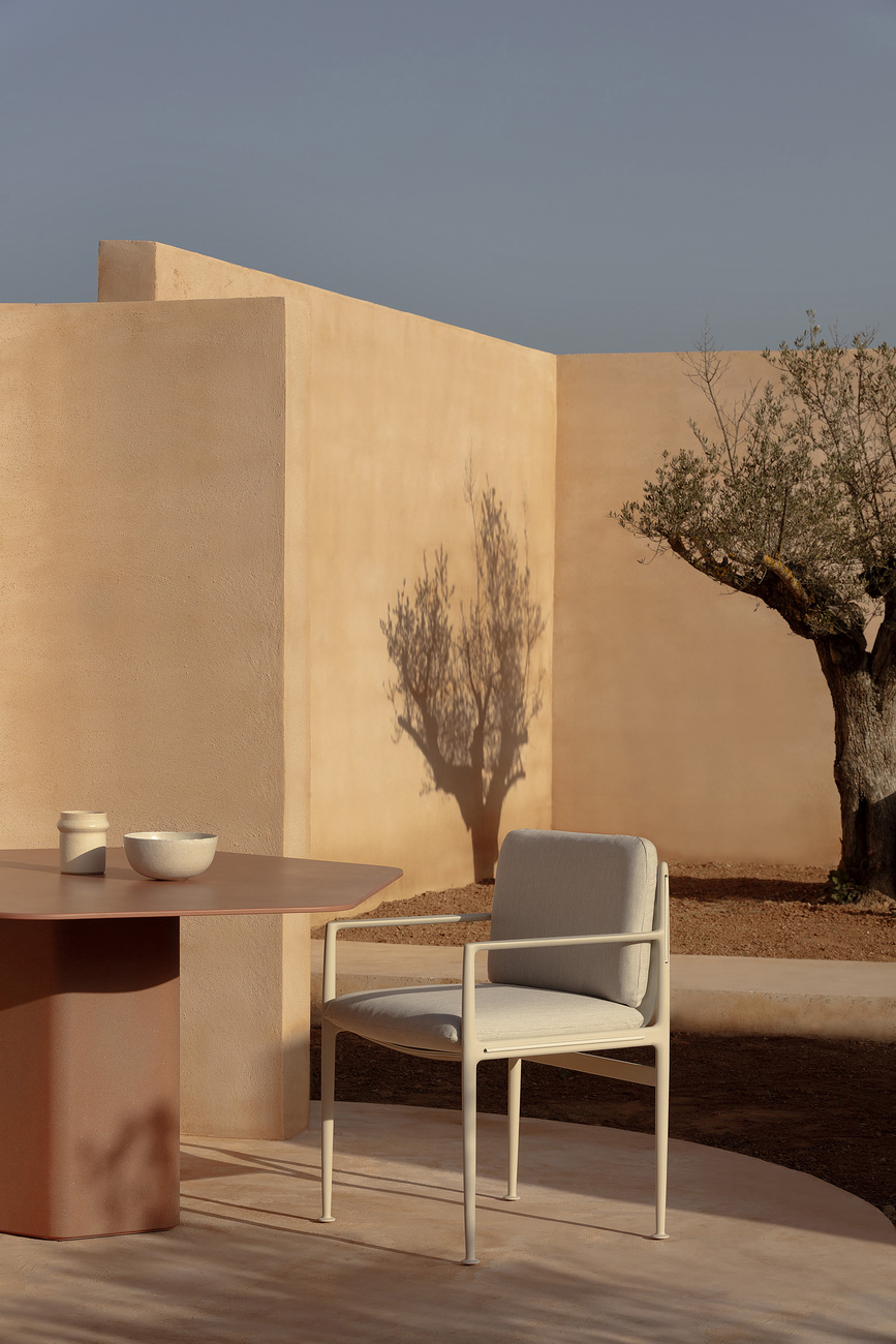 The shape of the Japanese belt ‘Obi’, which is used to fasten and decorate clothing, is creatively reflected in the structure of the chairs – the slim profile made of high-strength aluminium tubing forms the basis for the elegant, dynamic curve of the wide band. Made from technical Zander fabric or premium Sunbrella Sling, it is available in numerous variants that add a particularly elegant touch. The removable cushion lies on top of it, offering a high level of comfort.