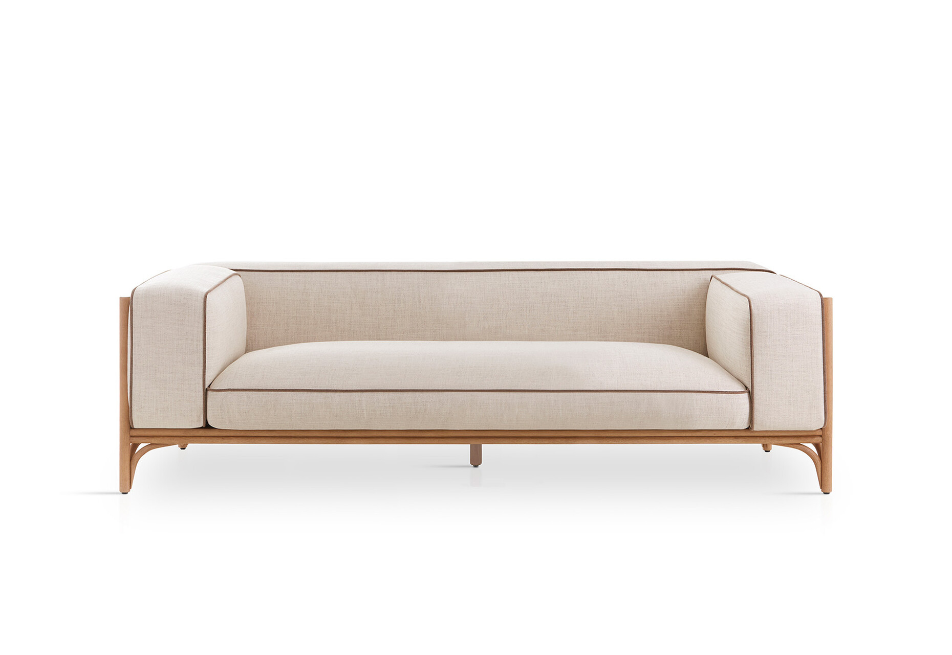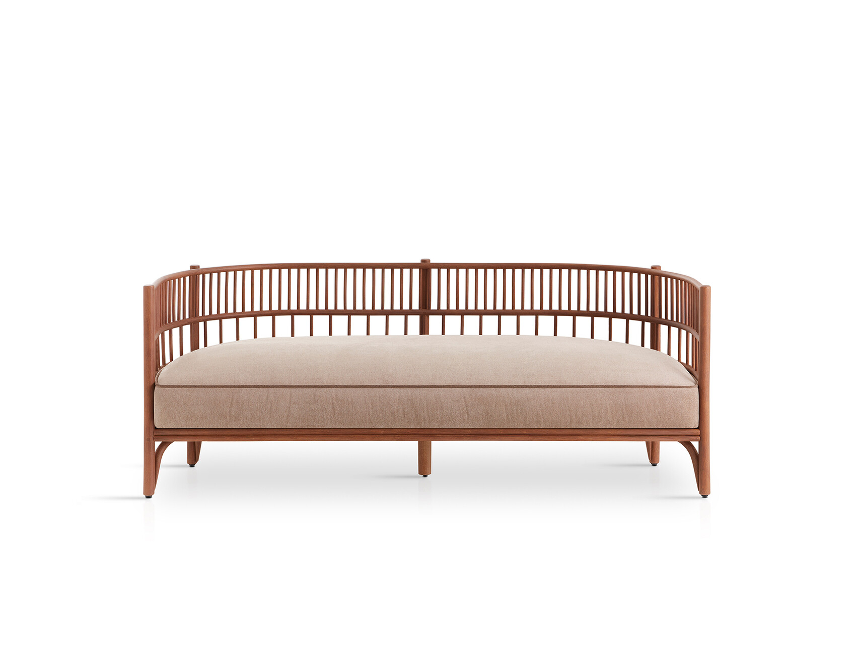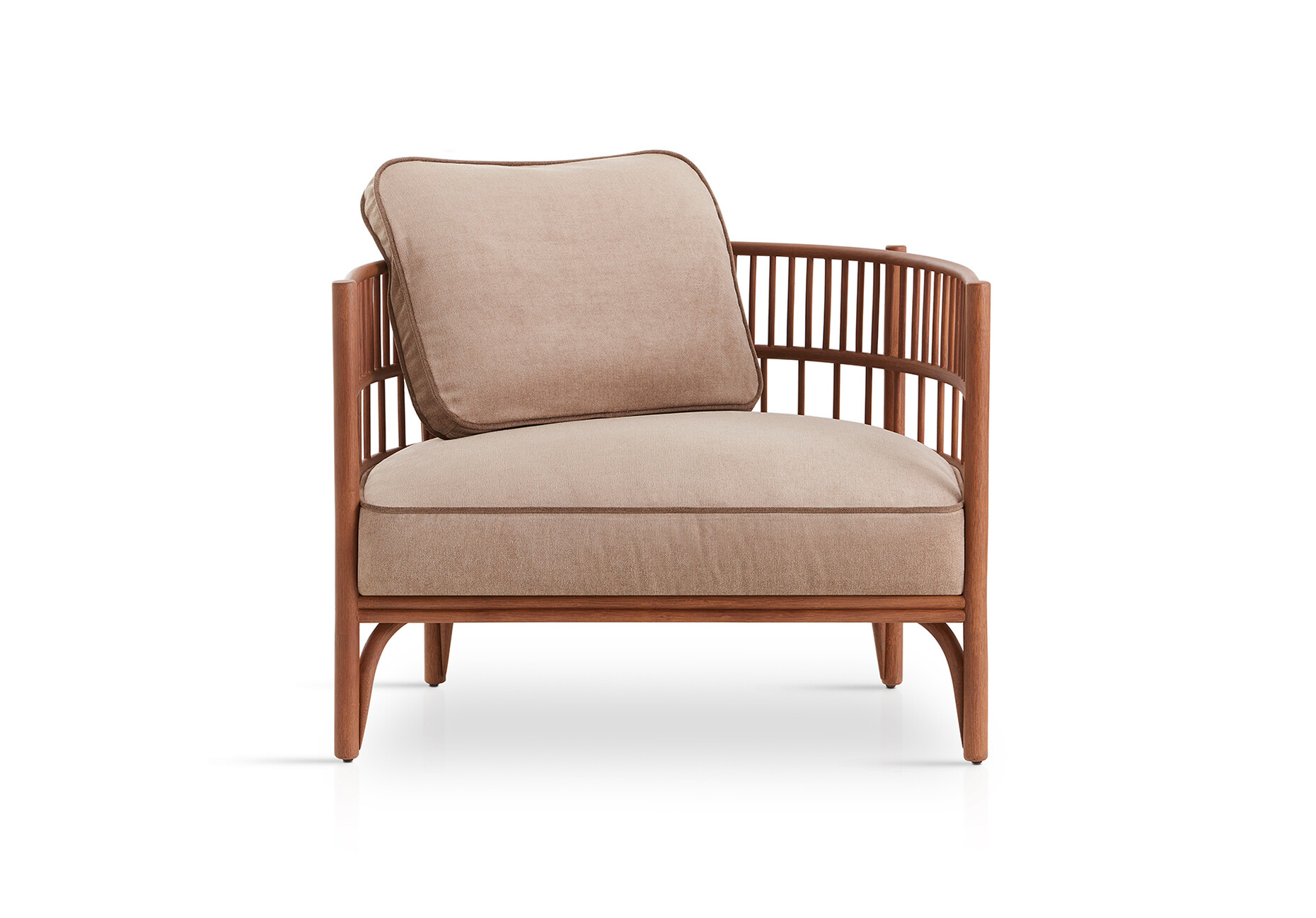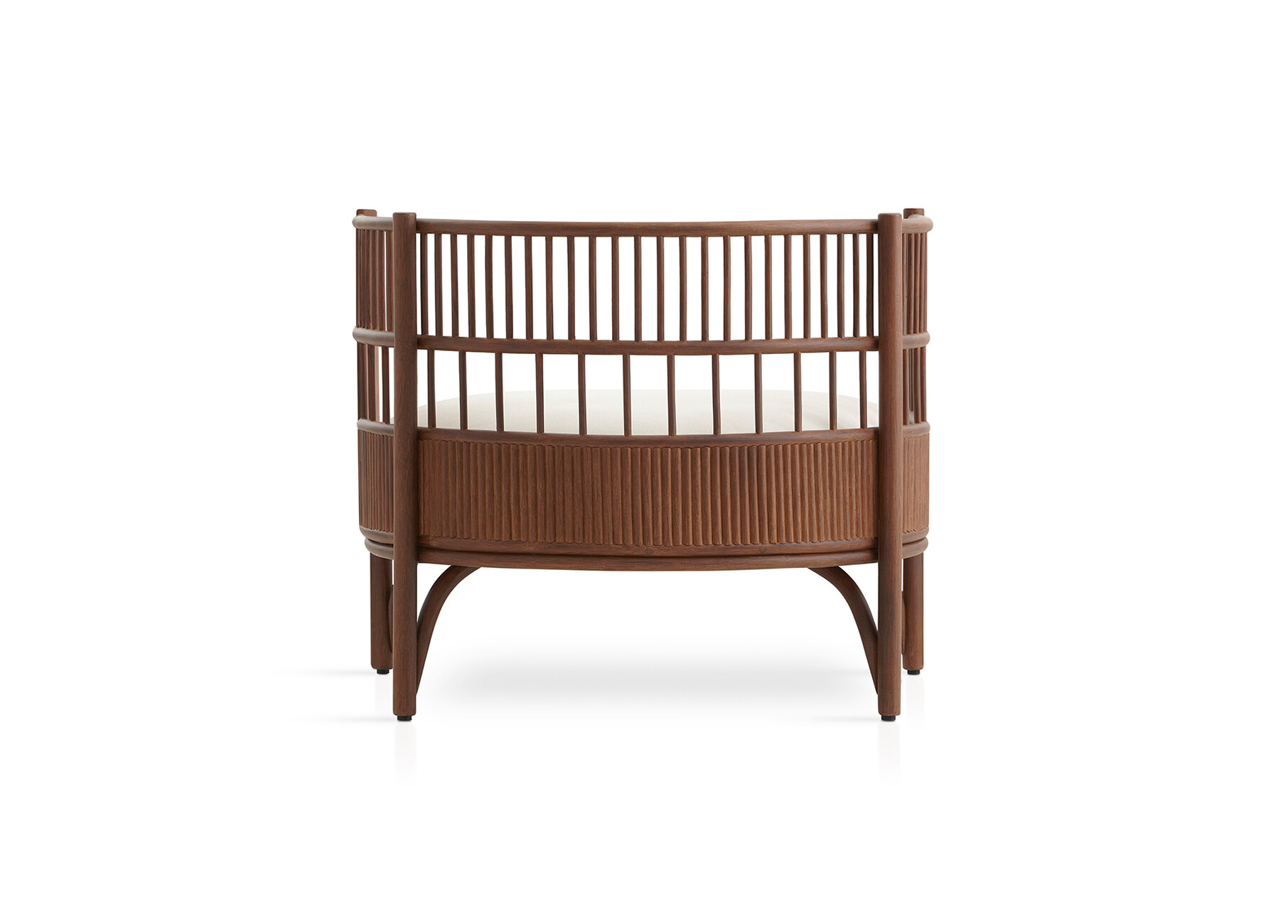 Rattan is firmly woven into the DNA of Expormim and its modern designs that feature the robust natural material. Quincoces used the latter to design the “Cadenza” collection comprising a loveseat, a three-seater sofa, an XL-sofa, and two armchairs, a collection that although only designed very recently already looks so familiar as if it had always been around. Vertically placed struts at different distances surrounding the seat cushion create a protective semicircle around the seated person. The straight lines and dynamic structure with different proportions provide a new look at this traditional craft through a contemporary lens. They also demonstrate Expormim’s great expertise in processing the lianas of the rotang palm into elegant furniture designs. At the base, the straight lines are complemented by gentle curves making for a pleasant contrast. From every angle the design of “Cadenza” reveals a new, striking silhouette. “The rattan is the main focus of the project; everything revolves around its flexibility and lightness. The idea was to create a sequence of rhythmic variations by applying different techniques to the material,” explains David López Quincoces.