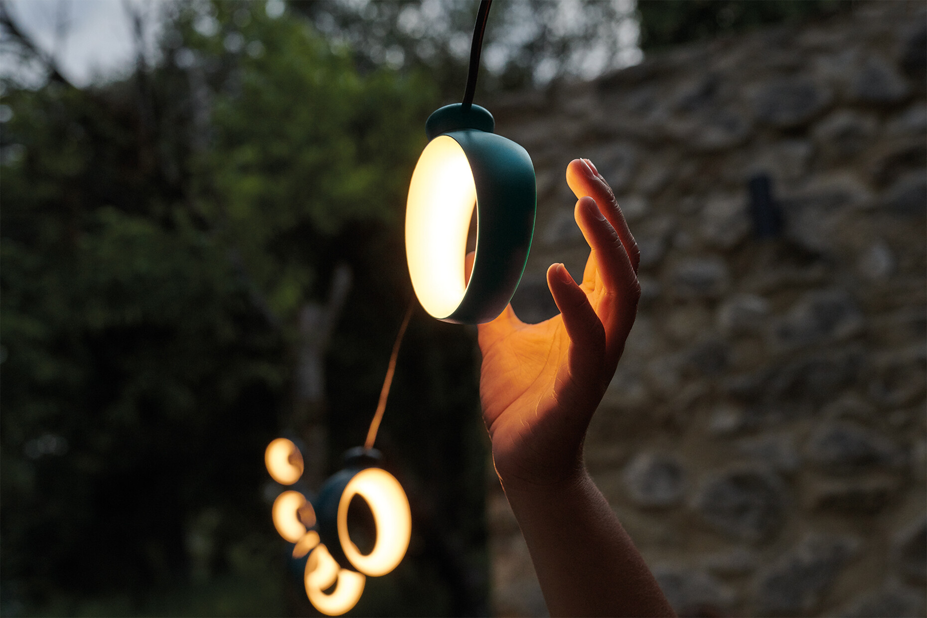 Each of the dynamic light rings of "HOOP" can be directed completely around its own axis in the desired direction. J. Mazoyer-Do & Studio Fermob created the design for Fermob and also thought up a whole range of practical details: For example, "HOOP" is equipped with a 12-metre long cable. A suspension foot with a sturdy base, which is available separately, ensures a firm hold in any location. Thanks to Bluetooth technology, the warm white light of "HOOP" can be controlled and dimmed via the "Fermob Lighting" app. And the option for an individual touch has also been thought of: for the stylish light chain you can choose between the colours acapulco blue, ochre red and cactus. (am)