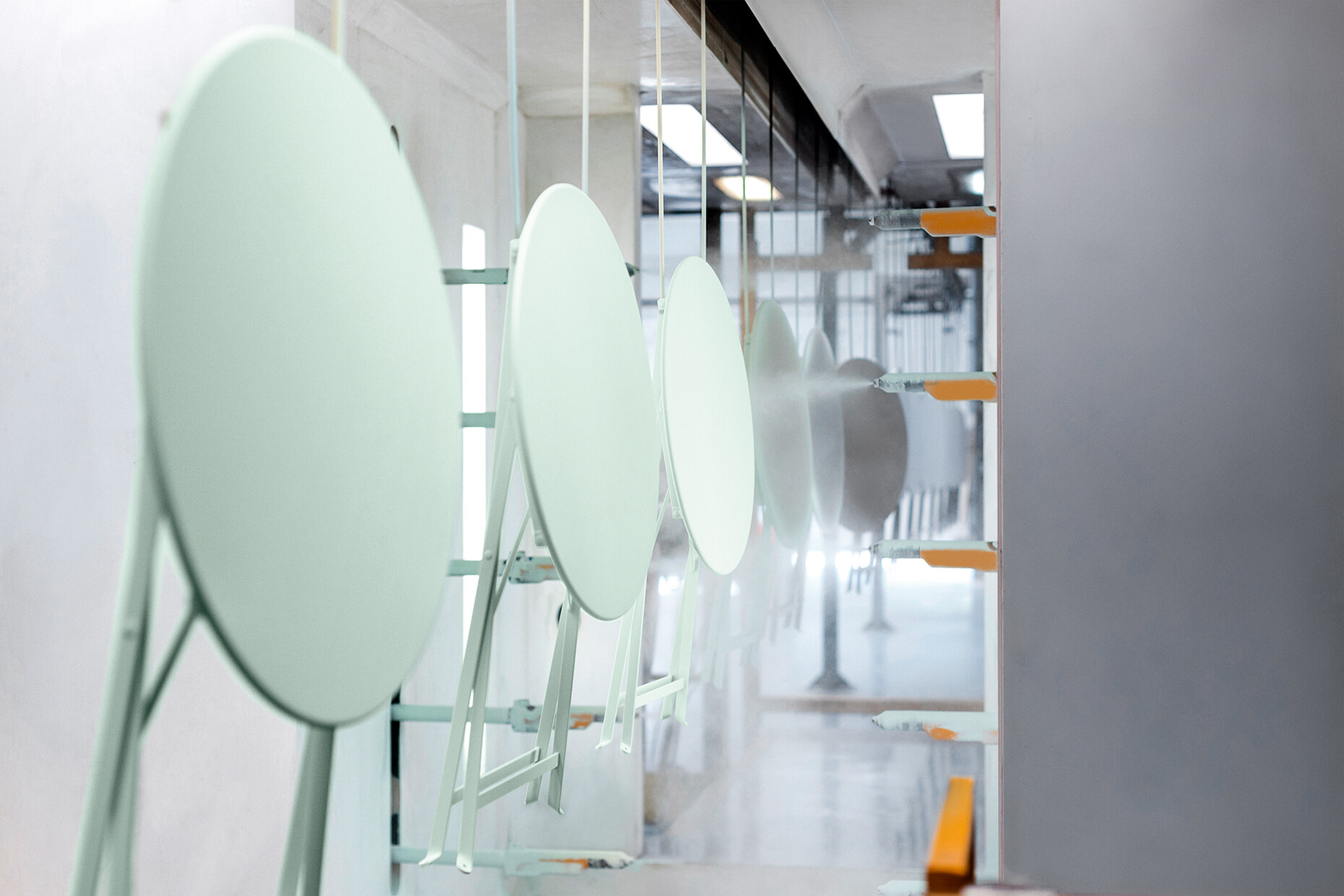 Baptiste Reybier: To accompany our customers throughout their lives means developing repairable, durable, reusable and adaptable products. Our metallurgical heritage forms a solid foundation for this. Metal is a traditional material that can be recycled indefinitely and enables the creation of robust, durable products. Eco-design has been firmly established at Fermob for more than thirty years. We consider each product throughout its entire life cycle. To this end, we have developed our own repairability and recyclability indices. Today, 87 per cent of our products are classified as easily repairable, and nearly 95 per cent are fully recyclable. A current example is our "Voulez Vous" indoor sofa. With the help of a life cycle analysis, we were able to reduce its environmental impact by 44 per cent through a lighter structure, bio-based foam and a cover made from 100 per cent recycled material. Our emission-free painting facility, which was introduced back in the 1990s, operates in a closed loop and without solvents. It combines high environmental performance with exceptional durability. With the expansion of our repaint service in Germany in 2025, we are taking a further step by enabling our customers to have their furniture refurbished to industrial standards, extending its service life and embedding colour in a circular economy approach.
