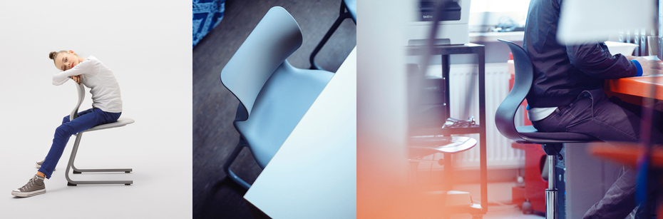 The result of the design process goes by the name of “Pro.” The lightweight chair, now an entire product family, consists of a base frame and a plastic seat shell that enables dynamic sitting. However you wish to sit, whether facing forward, to the side, or straddling the chair, the virtually circular seat does not restrict freedom of movement and the flexible, S-shaped curved backrest adjusts accordingly.