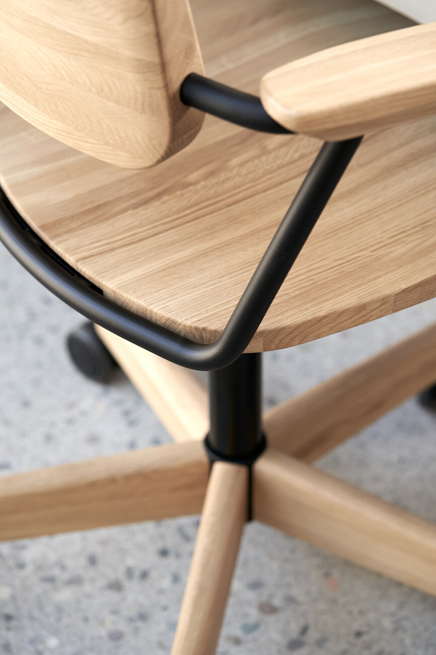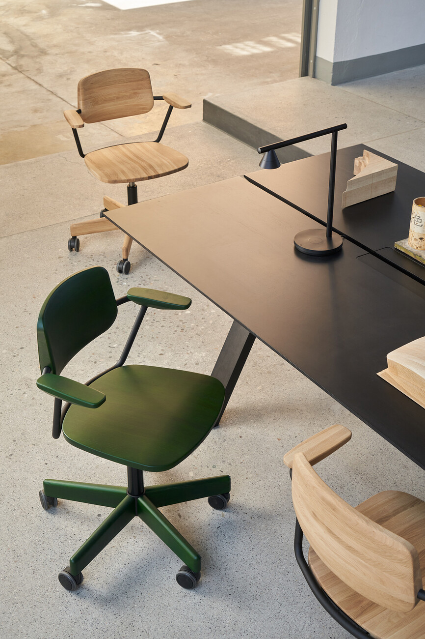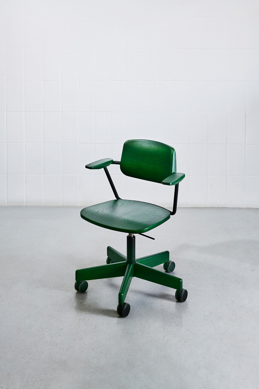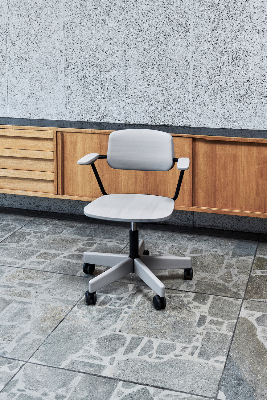 With the "Giroflex 150 Limited Edition", Flokk's Giroflex brand returns to its roots and presents a wooden office chair limited to 150 pieces. Developed in collaboration with Swiss design studio BIG-GAME and Japanese woodworking specialist Karimoku New Standard, the furniture is a reinterpretation of a classic design: to do this, the Swiss design team drew inspiration from the brand's heritage, taking as its model the "Holson" chair designed in the 1950s by German designer Arno Votteler. The "Giroflex 150 Limited Edition" is suitable for both the home office and the office. The Japanese oak used for it comes from responsibly managed forests in northern Japan and was processed both mechanically and by hand into the backrest, seat, armrests and base. The "Giroflex 150 Limited Edition" is available in five different colors with a transparent surface that preserves the texture of Japanese oak, creating a link between past and present.