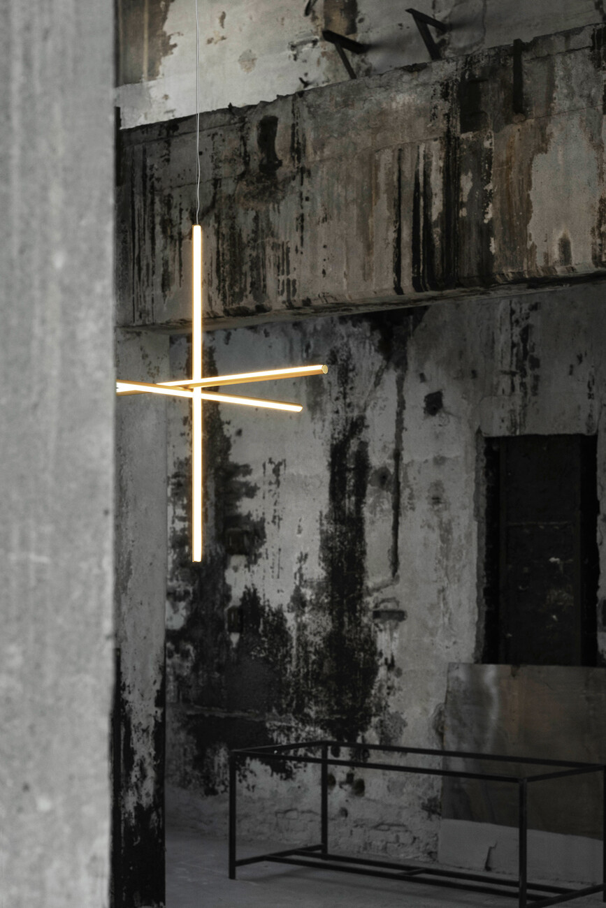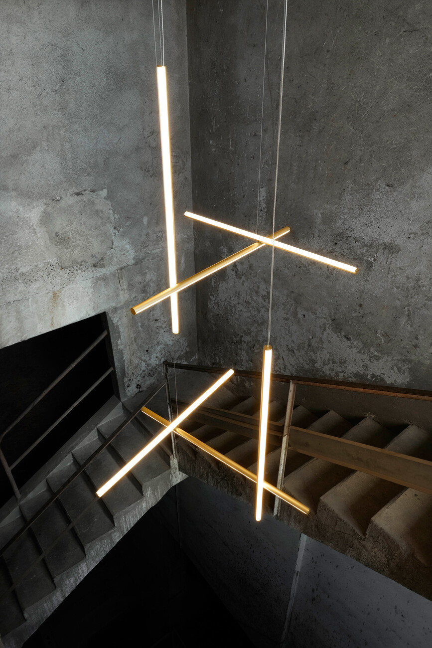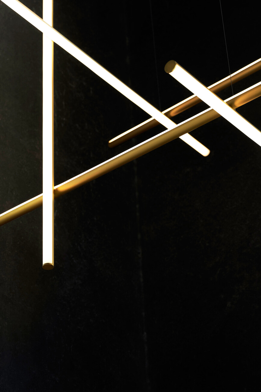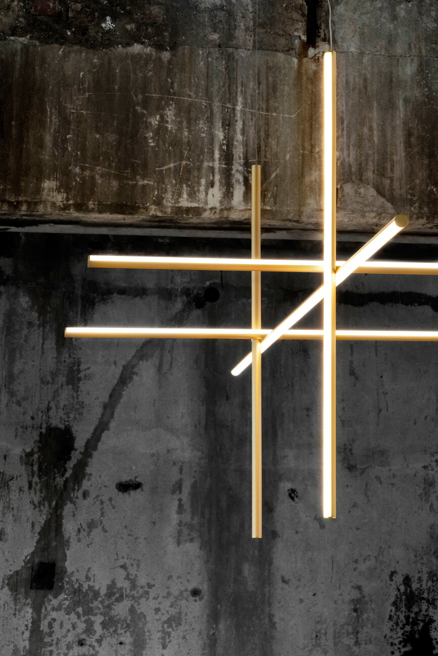 "Coordinates" can be described as softly glowing geometric lines that form grids and run the length of a room as if measuring it. They are indeed minimalist lighting objects that can be combined to create an eye-catching installation. "The challenge was to create something that has a sculptural character. Simultaneously, the collection needed to offer a variety of options for defining the space – ranging from the intensive to the pared-back," comments designer Michael Anastassiades. Essentially, his design for FLOS consists of aluminum tubes fitted with LED strips whose elements can be combined with one another. He took his inspiration from René Descartes’ mathematical concept of Cartesian coordinates in which the axes are positioned vertically to one another and all coordinate lines are at a constant distance to each other. "I not only studied visual arts but also civil engineering, so I look at things with a practically oriented mind, I seek out the structures," Anastassiades explains. Initially the system was only intended as feature lighting for the "Four Seasons" restaurant in New York City that was refurbished two years ago by architect Isay Weinfeld. Now in the form of "Coordinates" Flos has launched a system that can be employed in any conceivable setting: Among other things the collection includes four chandeliers in various sizes, three pendant luminaires, one standard lamp, and a repeatable module that can be either ceiling mounted or suspended. The overall effect differs depending on how the elements are combined and what began as a minimalist luminaire morphs into a complex statement. With 2700 k the light color has a warm underdone that is very easy on the eye. "I always want to achieve the perfect glow," says Anastassiades. The finish of the surfaces in champagne, alternating with the light strips, offers an exciting visual contrast. Flos’ collaboration with the London-based designer began back in 2011. "From the start I have been given a lot of creative freedom and received excellent support on all the technical issues," he says. And adds: "My collaboration with Flos is characterized by mutual trust and for me that is the key to creating visionary lighting solutions."