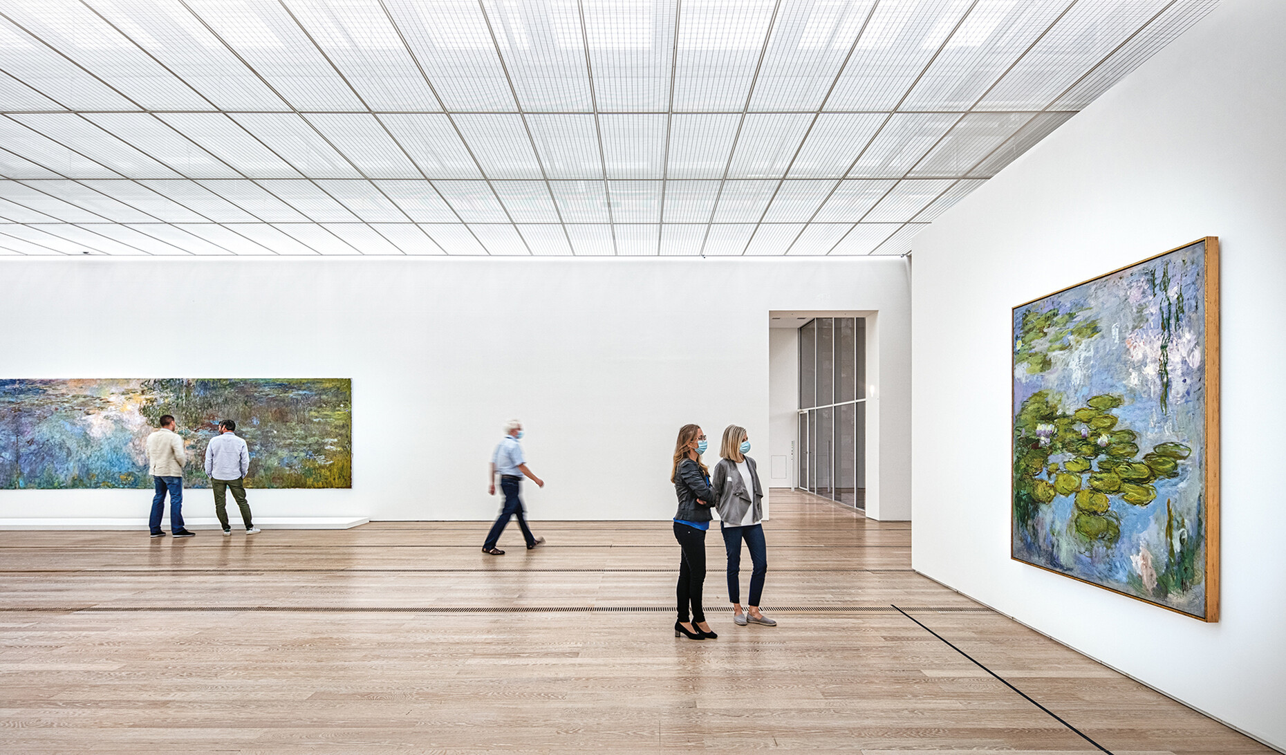 Light has always been groundbreaking for the Museum Fondation Beyeler in Riehen near Basel: Embedded in the nature of Berower Park, the rectangular low-rise building opens up to the sky with a glass roof. Floor-to-ceiling windows offer magnificent views to the garden side, as well as deep insights into the exhibition rooms. Low thresholds were a concern of the founding couple Ernst and Hildy Beyeler in order to make their extensive 20th century art collection accessible to a broad public. The elongated museum building for this purpose was designed by Renzo Piano at the end of the 1990s. With walls of volcanic rock, a winter garden and a garden pond, the Italian architect created gentle references to the adjacent river landscape.