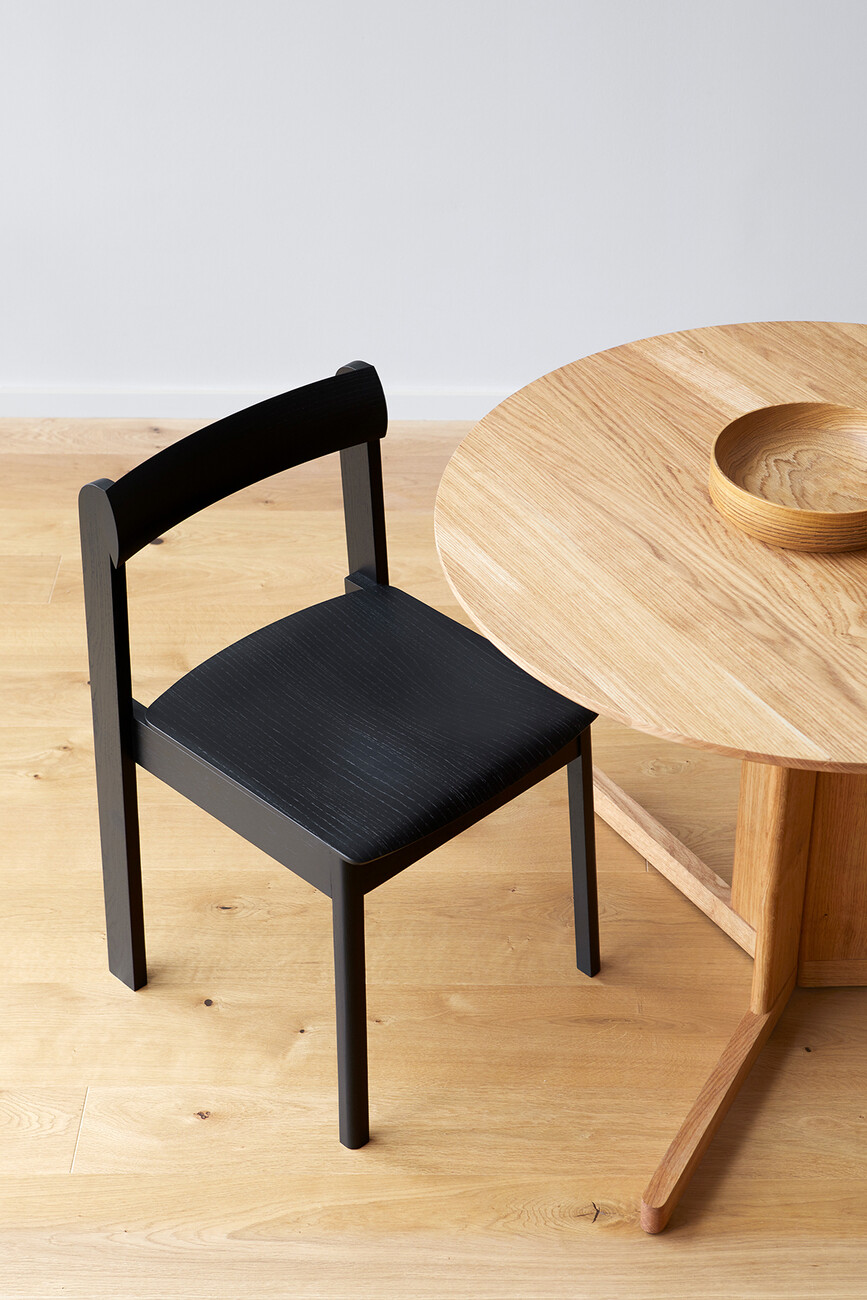 The structure is solid to the maximum: the clear lines of oak appear archetypal and merge smoothly into one another. The backrest, for example, is steam-bent into its final shape from a single piece of wood; there is not a single screw to be seen in the "Blueprint Chair". The human body was used as a model for the organic shape of the backrest and the seat, thus supporting a healthy posture. "With this chair, we tried to find a balance between sophistication and robustness. We aimed for a chair with a distinct character and gave it stretched legs that gently embrace the curved backrest. We also wanted it to be stackable, comfortable and fit into any environment," says Jonas Herman Pedersen of Herman Studio. For the finish, there is a choice between oak, white oiled and black stained oak, and it is also possible to have the "Blueprint Chair" by Form & Refine made in an individual colour on request. (am)