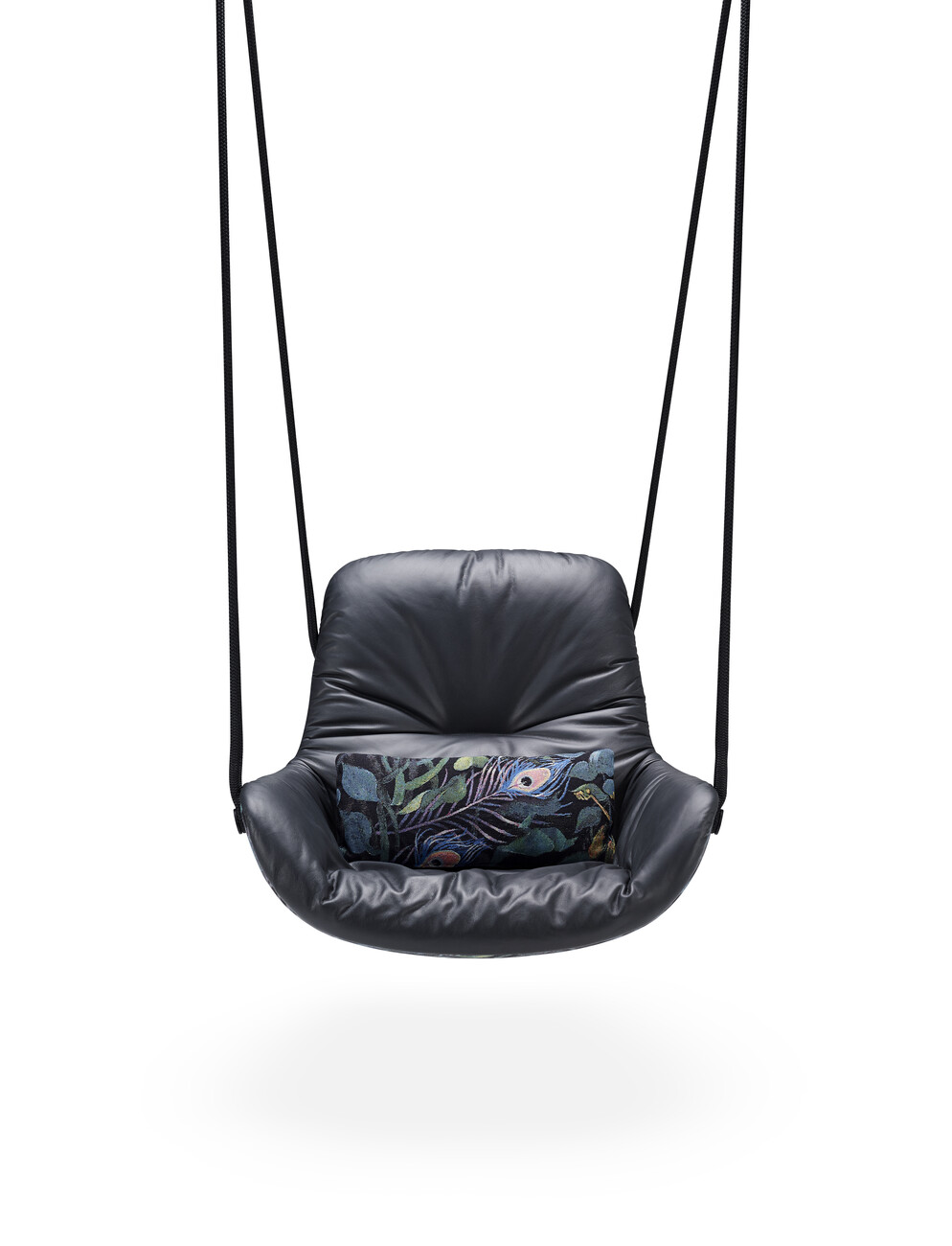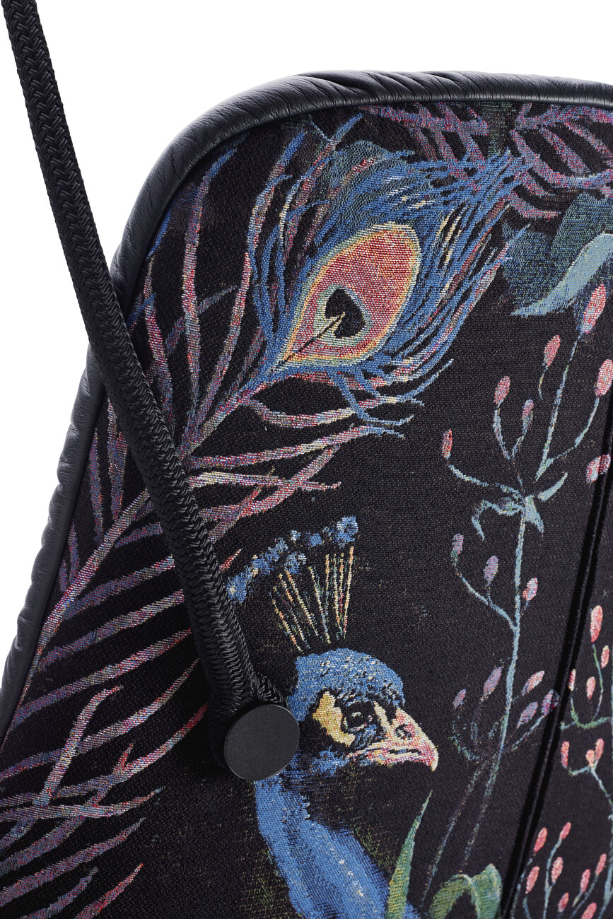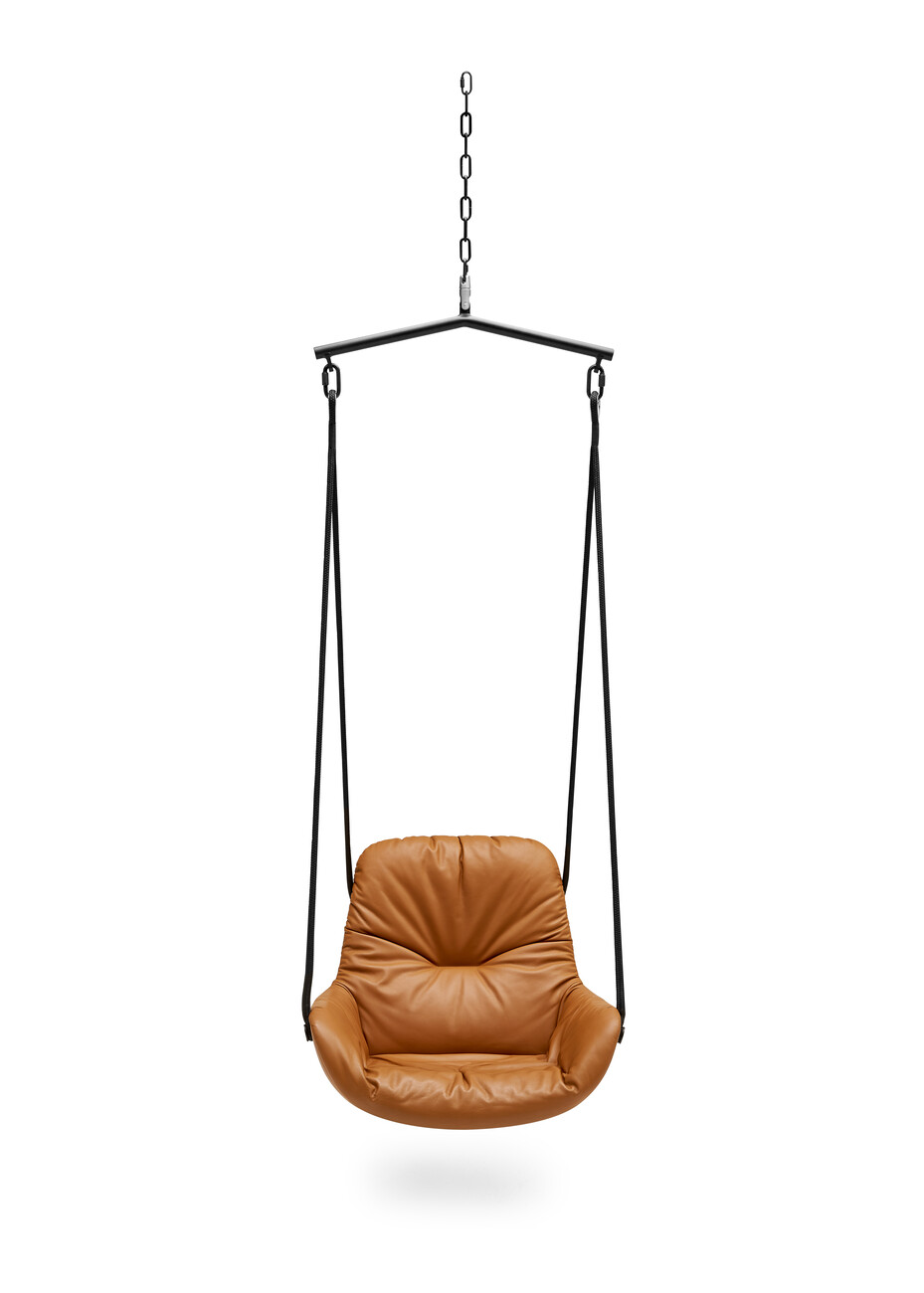 The modular nature of the designs by Hoffmann Kahleyss is exemplified by the “Leya” product family – the designers view the frames and seat shells of their collections as building blocks that can be assembled separately of one another to create new variants. In their shared design language too, Birgit Hoffmann and Christoph Kahleyss combine the best of both worlds. “Birgit is more open to experimentation and more impulsive, while I’m more technical and like to question the ideas,” explains Kahleyss. “The products have something of each of us: unpretentiousness, function, but also individuality and originality,” Hoffmann adds. The idea of a rocking chair is followed by the “Leya Swing Seat”: To this end, the “Leya” seat shell is fitted with metal eyelets and ropes for installation on a veranda. The free-hanging construction is reminiscent of childhood swings and provides ample movement even with little available space. The single hanging point also makes it possible to rotate 360 degrees in the chair. Differences in ceiling height are balanced out easily with the chain that forms part of the “Leya Swing Seat” suspension. For that certain something extra, the exterior of the seat shell can also be covered with the opulent “Oasis” tapestry fabric with its jungle pattern, which Freifrau created in collaboration with designer Christian Trzaska and the Belgian fabric manufacturer Meisterwerke. “Every Freifrau chair should be something really special,” notes Christoph Kahleyss.