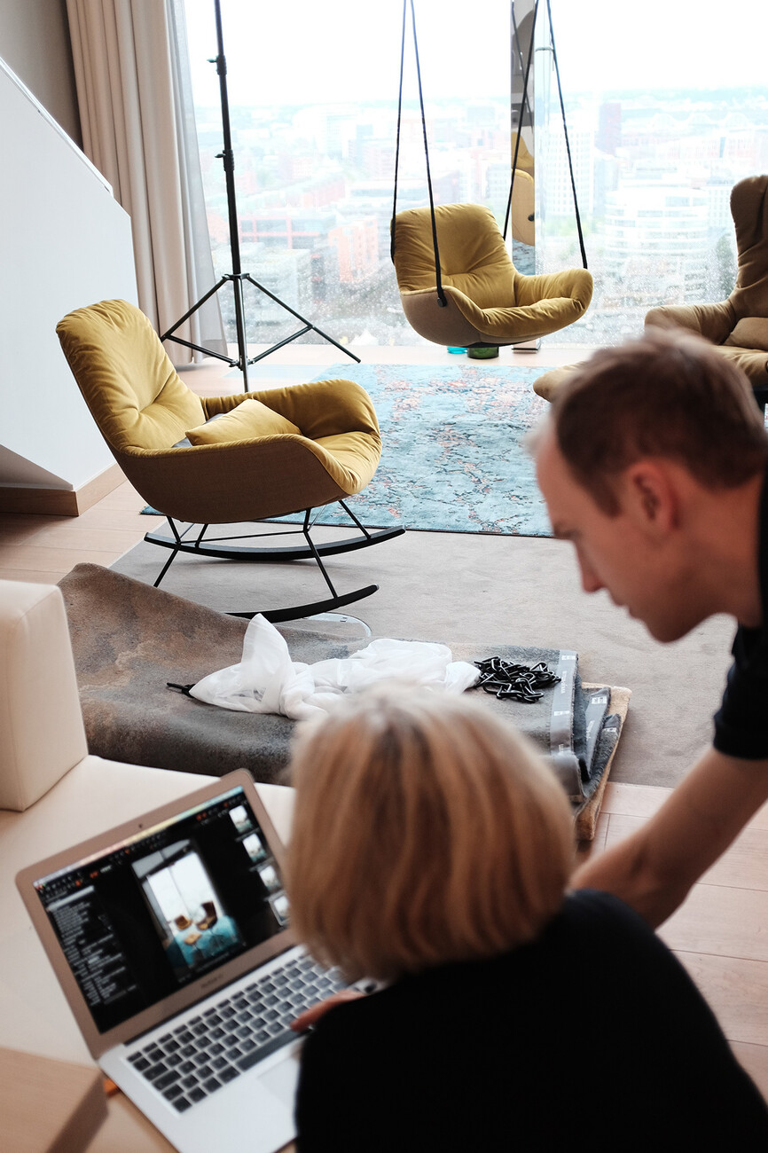 “The manufacturer of favorite pieces” – this is the claim of seating manufacturer Freifrau based in Lemgo in North Rhine-Westphalia. Here, comfort and individuality play a major role, as the company aspires to make customers feel at ease with the designs. “We are not auteur designers creating works of art with no thought to whether people like them or not. We want people to like our designs,” says Christoph Kahleyss. “It’s important to us that we adopt a relaxed, experimental approach,” adds Birgit Hoffmann. The Hoffmann Kahleyss tandem have already come up with numerous extraordinary creations since Freifrau was first established back in 2012. Added to which, Birgit Hoffmann leads the workshop’s team of designers as creative director. “Not too rigid, but elegant,” is the aim for the designs that define the collection. For their current work, the two industrial designers are bringing some movement into play with runners that form the base for the seat shells of the “Leya” family and afford new scope. With the “Leya Rocking Lounge Chair”, the team are bringing the rocking chair back to the living room, combining it with the cozy shell of the “Leya Lounge Chair” and slender runners made of wood.