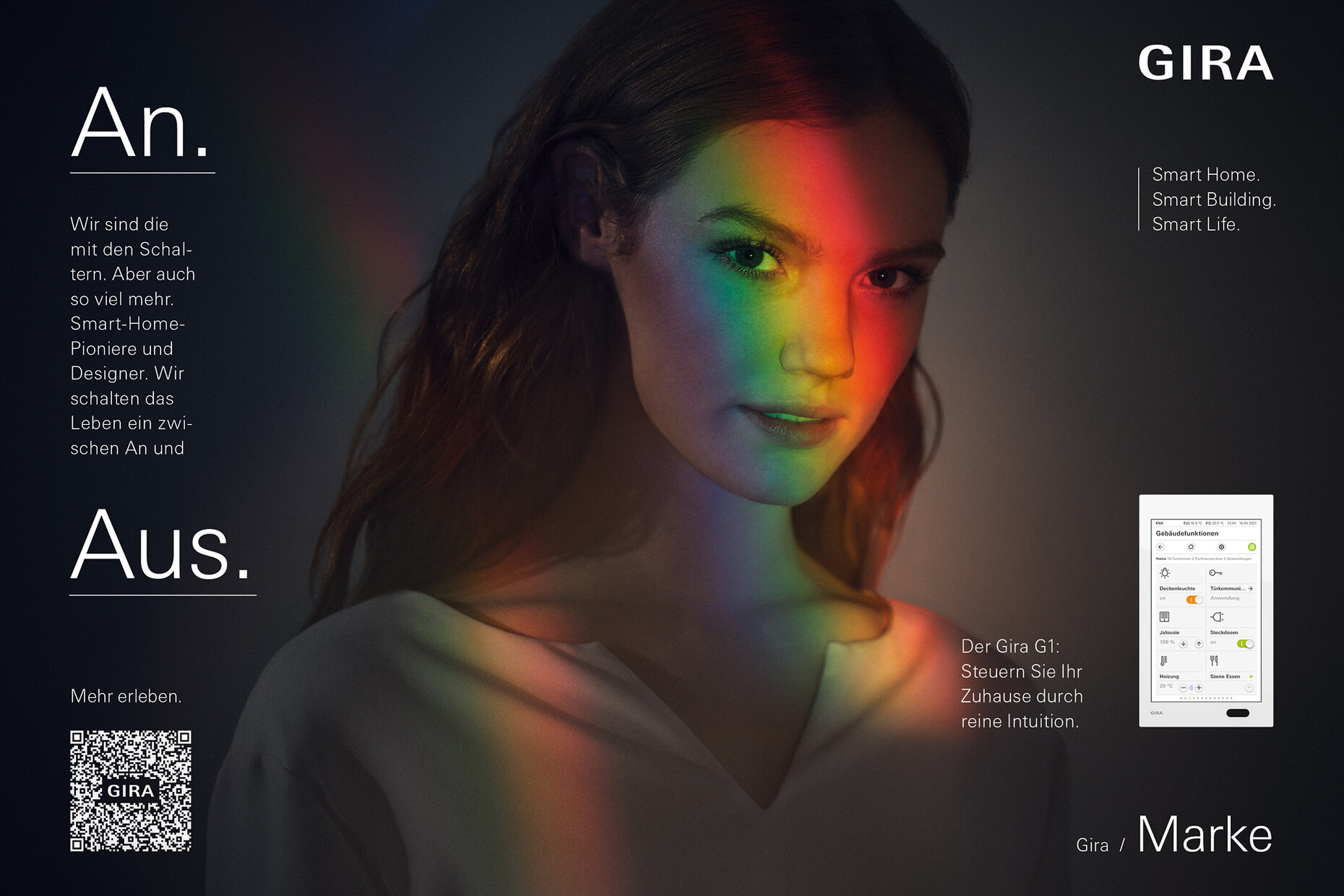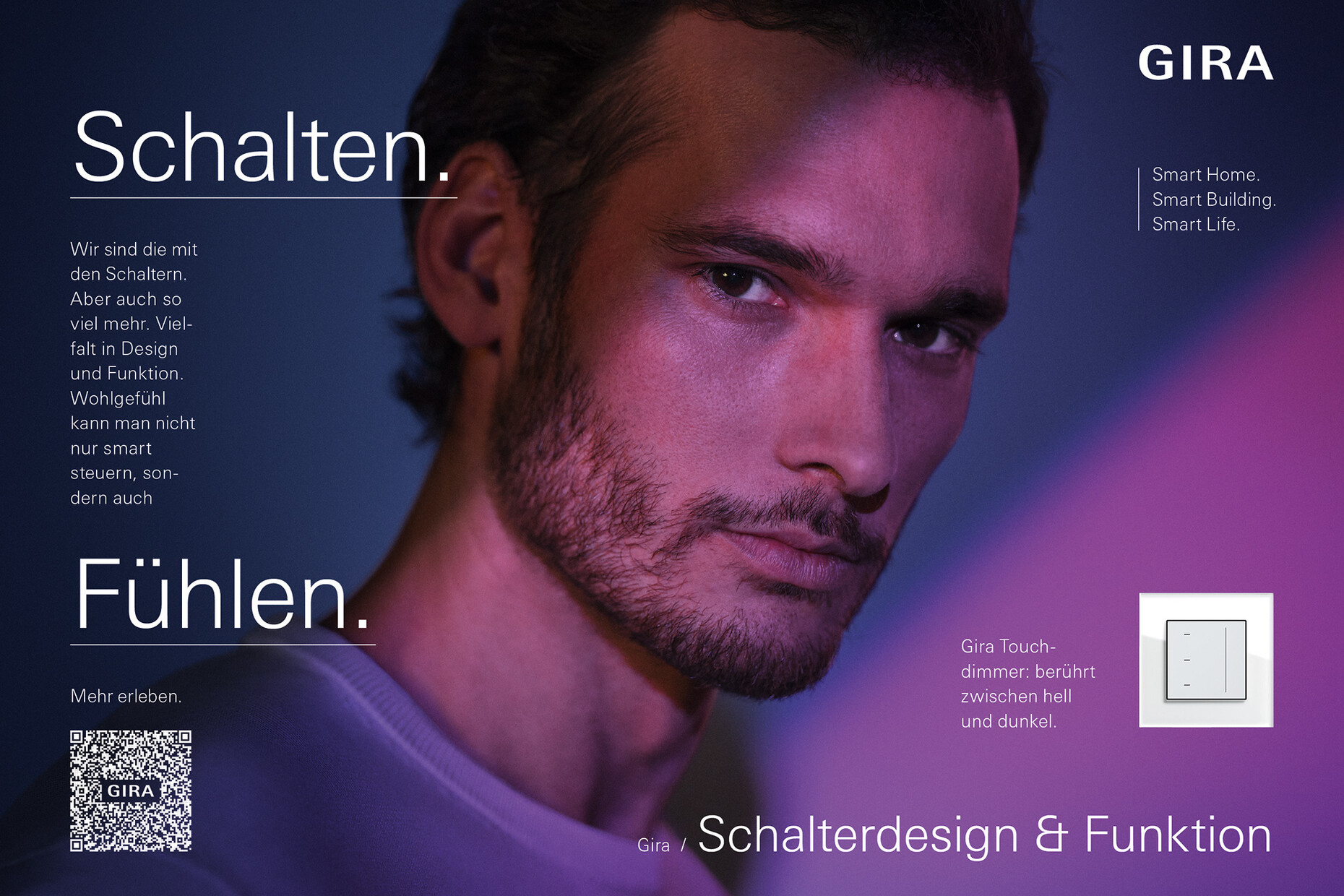Julian Waning: In the past, Gira just listed its products and this had a very businesslike feel to it. It sought to reach mainly tradesmen and planners. What is different about the current image campaign is that it appeals primarily to the end user. This goes a long way to explaining our new claim – "We are the people for switches – but so much more besides". This is why the new campaign appeals to the emotions to such an extent. The focus is not on the technology but on the people for whom we are coming up with solutions, solutions that make their lives a bit easier, simpler and safer. We have consciously stressed the combination of engineering skills and an appeal to the consumer’s heart and soul. Furthermore, the way the campaign makes use not only of spectral colors but also of the play of light and shade is highly atmospheric. This also explains why it goes down so well with tradesmen and planners.