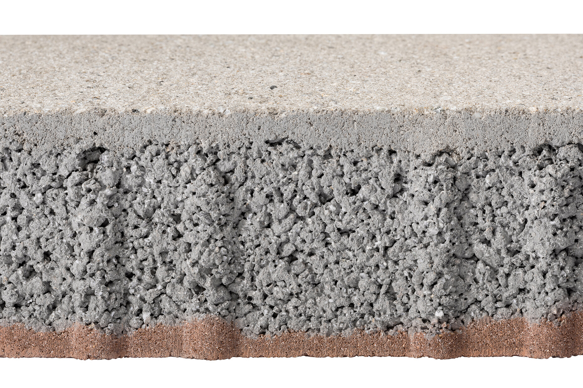 Another topic that the family-owned company, now in its third generation, has been working on for over 20 years is the creation of ecological surfacing systems for the concept of the “sponge city”. The latter provides for intermediate rainwater storage wherever the water falls, thus maintaining the natural water cycle. To this end, Godelmann has now engineered the “GDM.KLIMASTEIN” in its in-house stone laboratory: It is a brand-new paving material that reinforces surfaces without sealing them. In contrast to conventional paving blocks, the “GDM.KLIMASTEIN” has a three-layer structure.