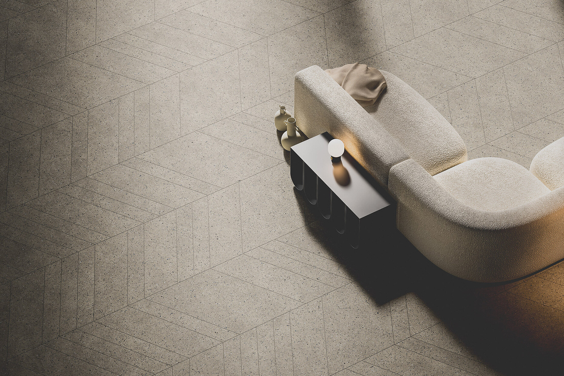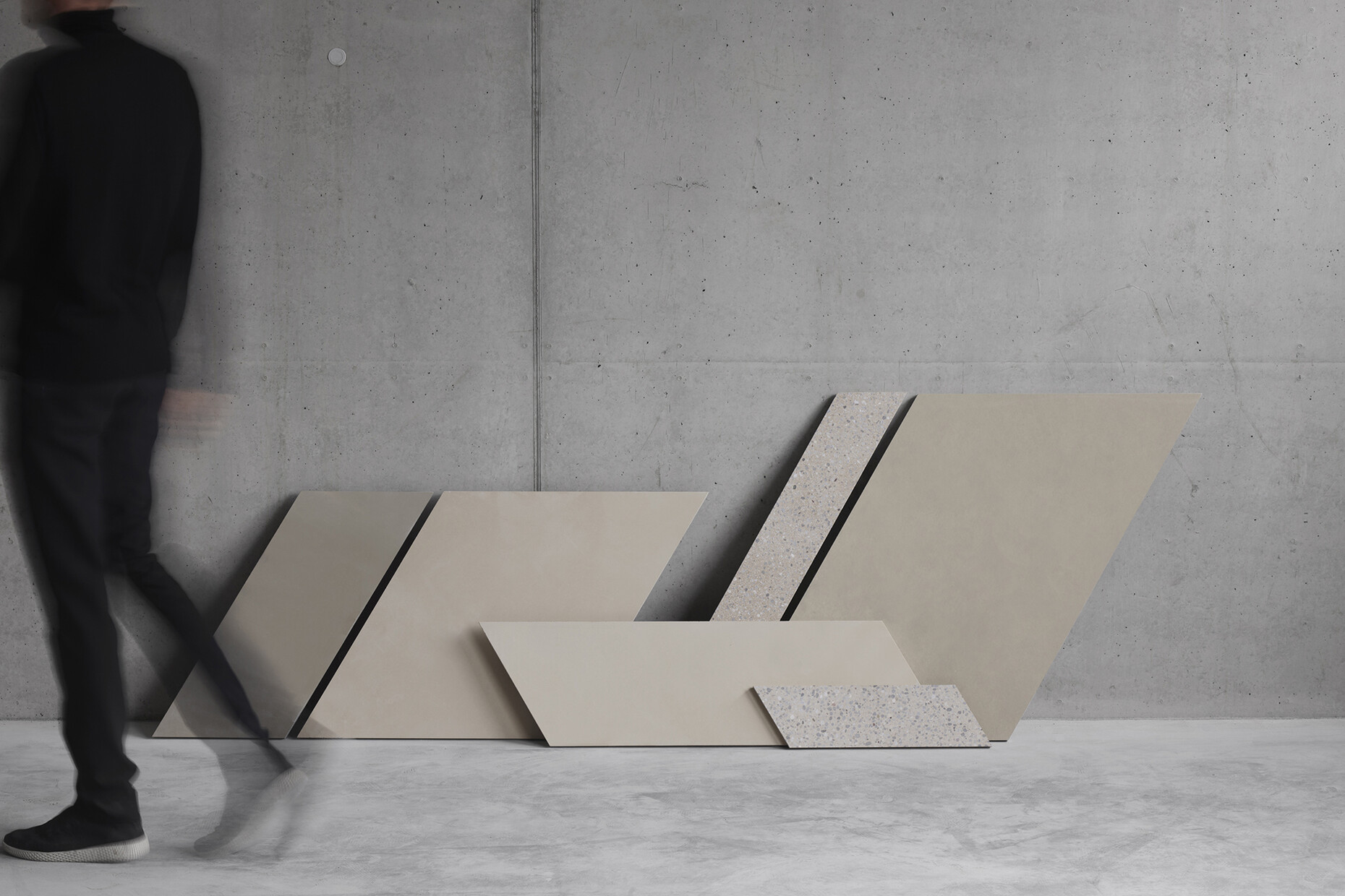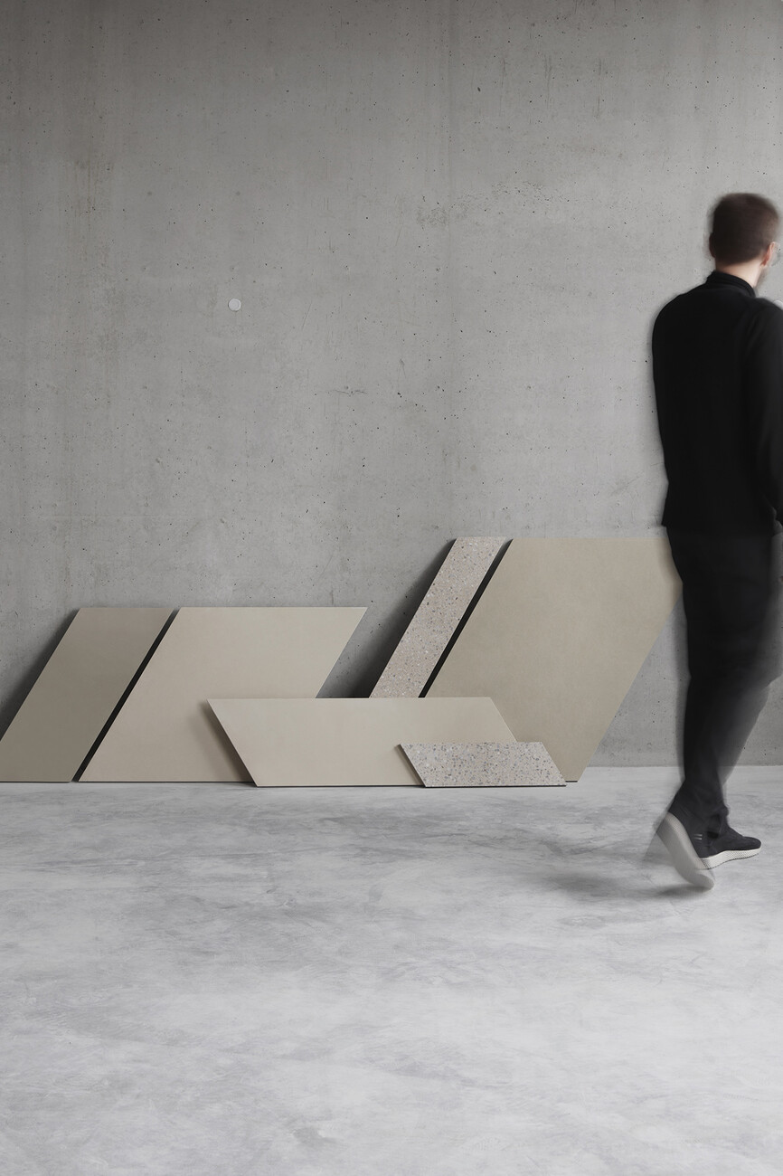 At the same time, Godelmann is also constantly breaking new ground in terms of design – for example in the form of so-called architectural concrete, a highly refined exposed concrete that can be produced in low material thicknesses while precisely reproducing textures on its surface. To this end, the company has now collaborated with designer Sebastian Herkner, who has developed a product line for both interior and exterior use. "GDM.AWA" is the name of the new architectural concrete collection, in which Herkner translated the look of a classic herringbone parquet into fine, velvety-looking and highly dense design tiles made of concrete. These are suitable for both floors and walls and offer a wide range of design options for both indoor and outdoor use.