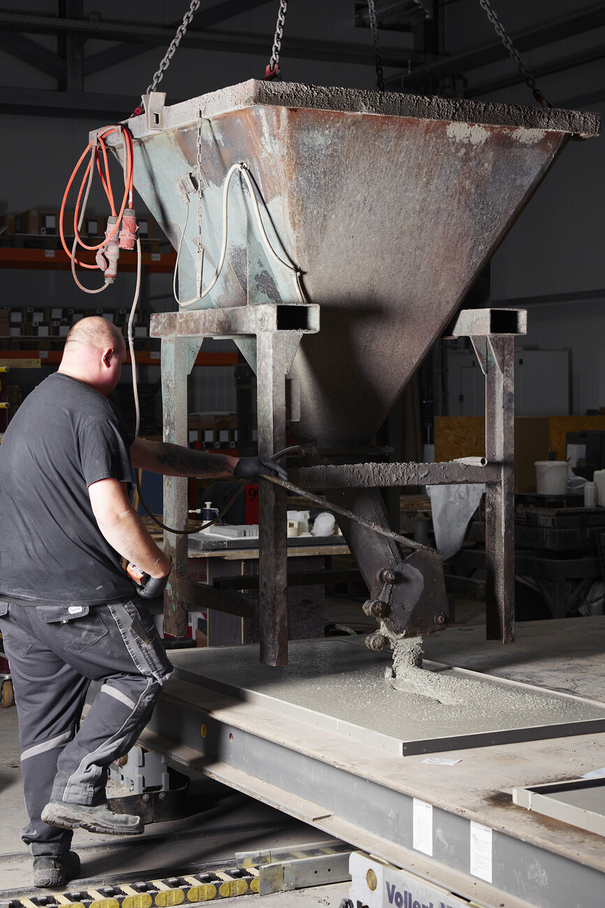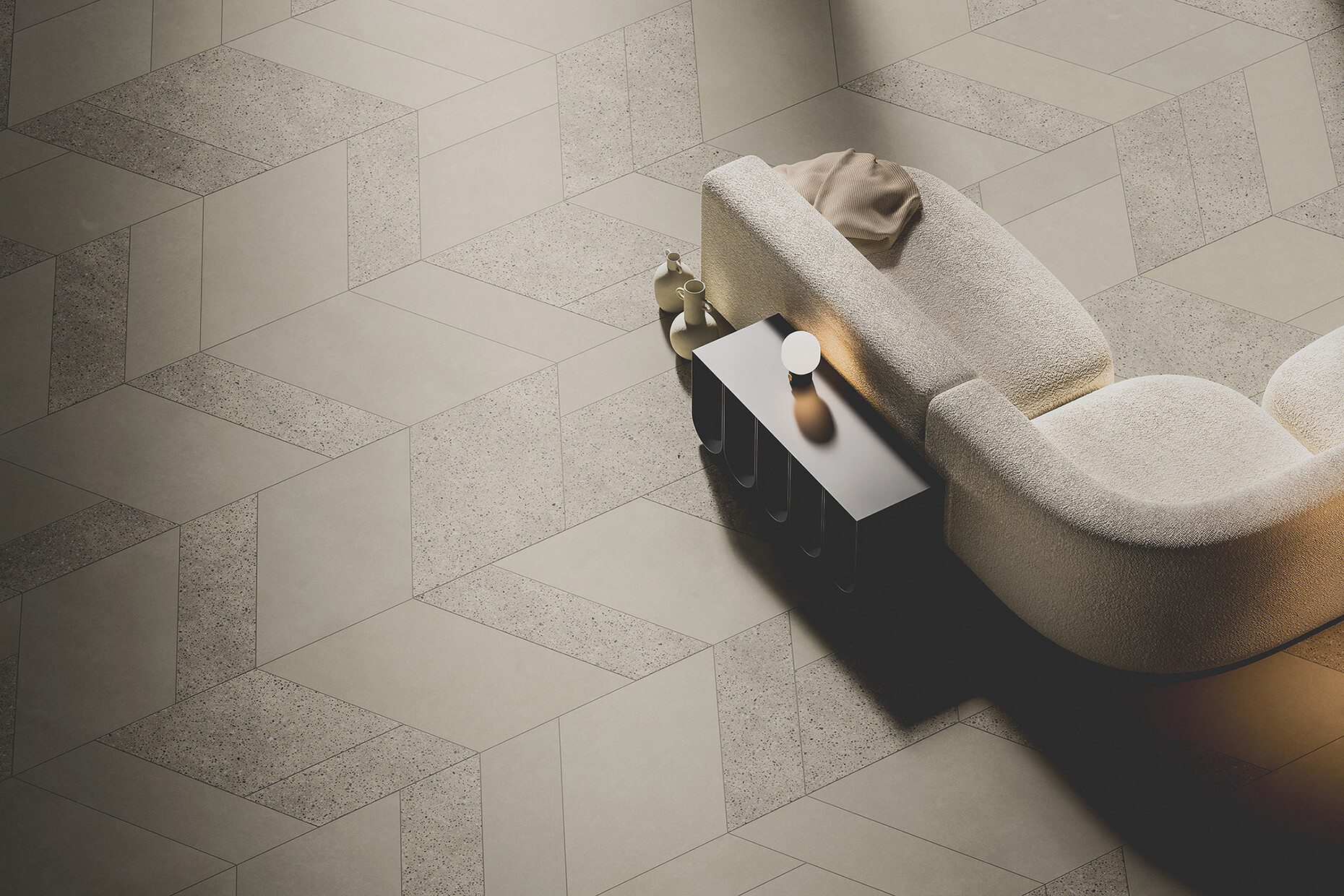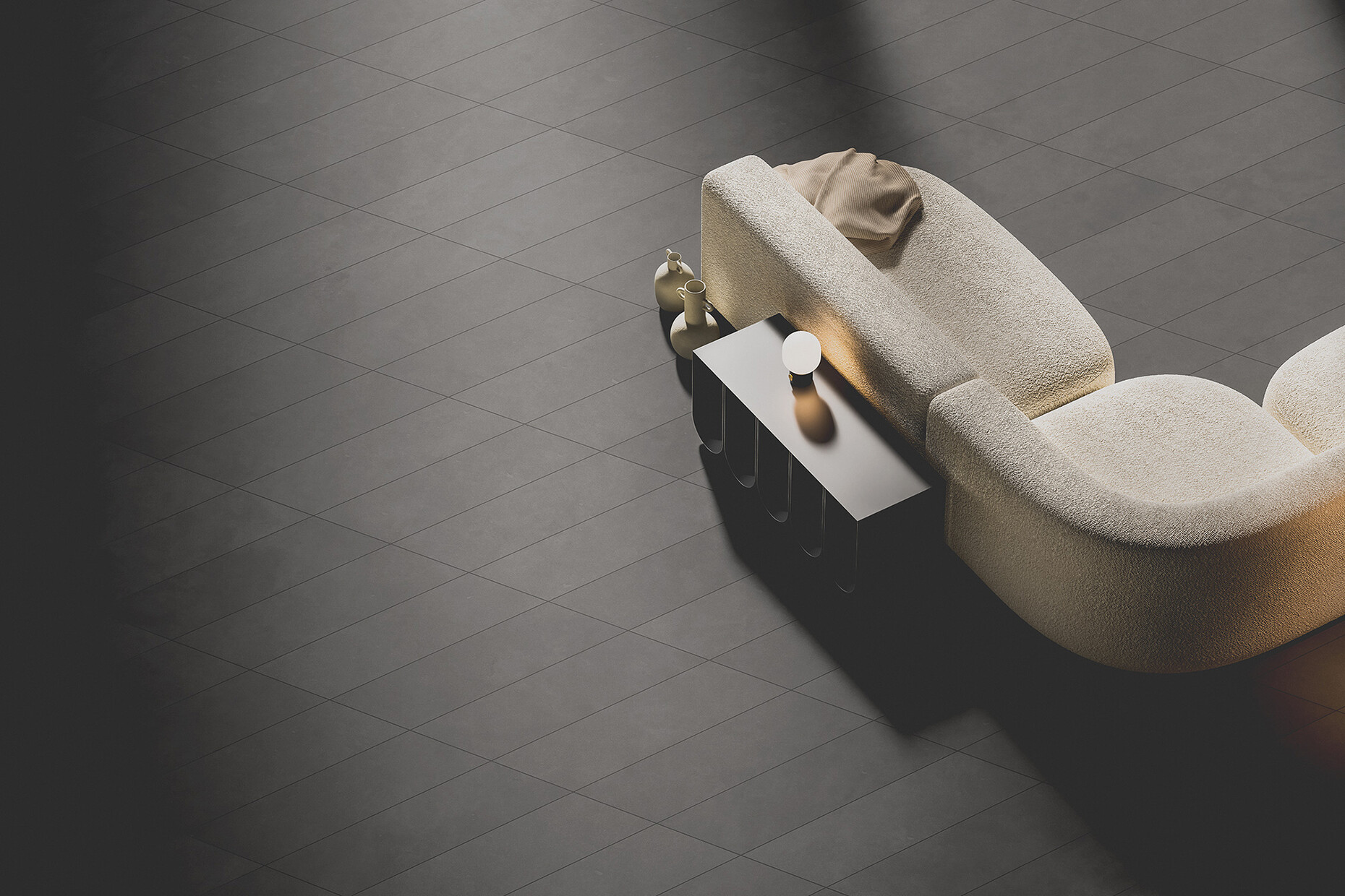 At the same time, Godelmann is also constantly breaking new ground in terms of design – for example in the form of so-called architectural concrete, a highly refined exposed concrete that can be produced in low material thicknesses while precisely reproducing textures on its surface. To this end, the company has now collaborated with designer Sebastian Herkner, who has developed a product line for both interior and exterior use. "GDM.AWA" is the name of the new architectural concrete collection, in which Herkner translated the look of a classic herringbone parquet into fine, velvety-looking and highly dense design tiles made of concrete. These are suitable for both floors and walls and offer a wide range of design options for both indoor and outdoor use.